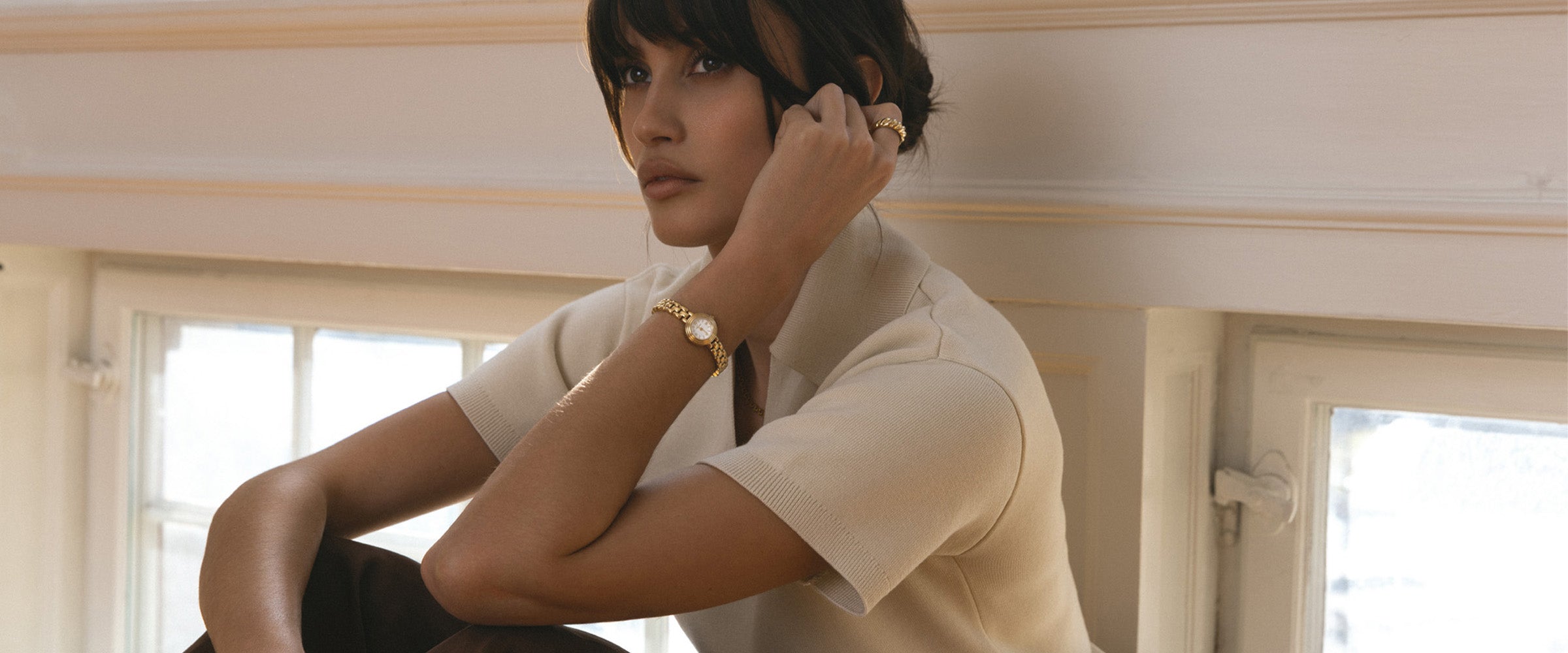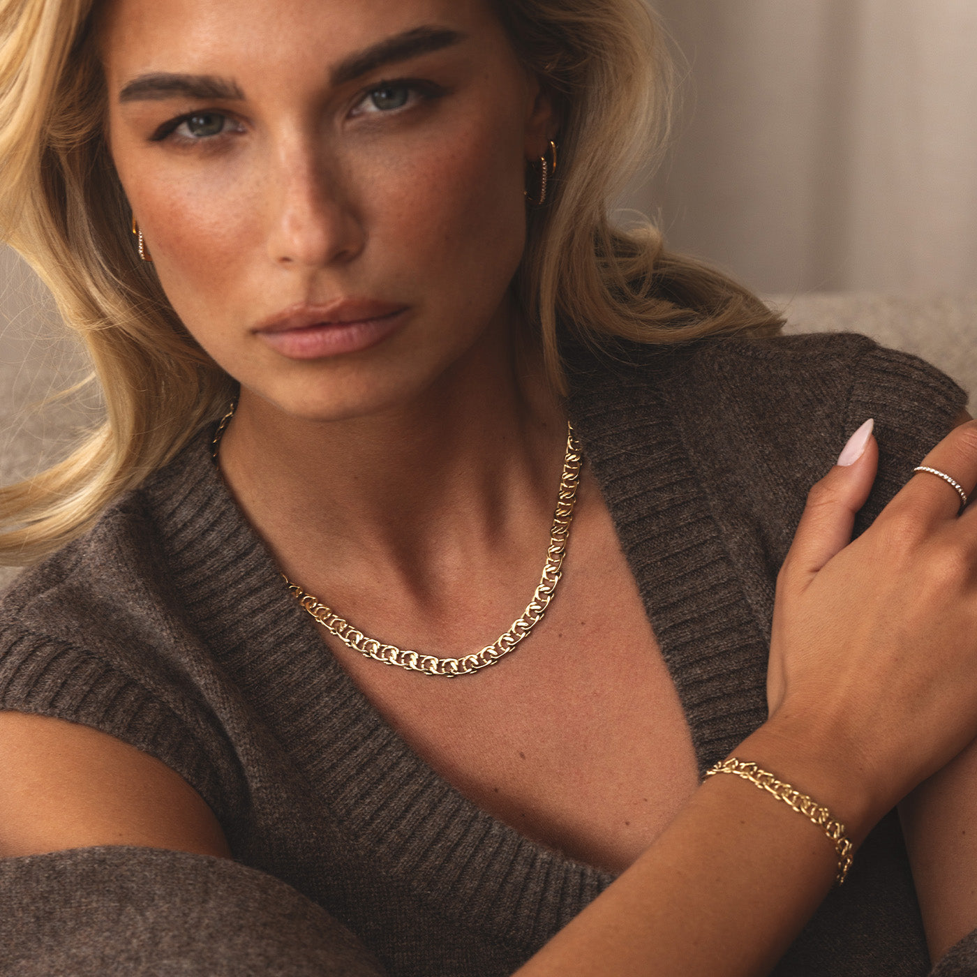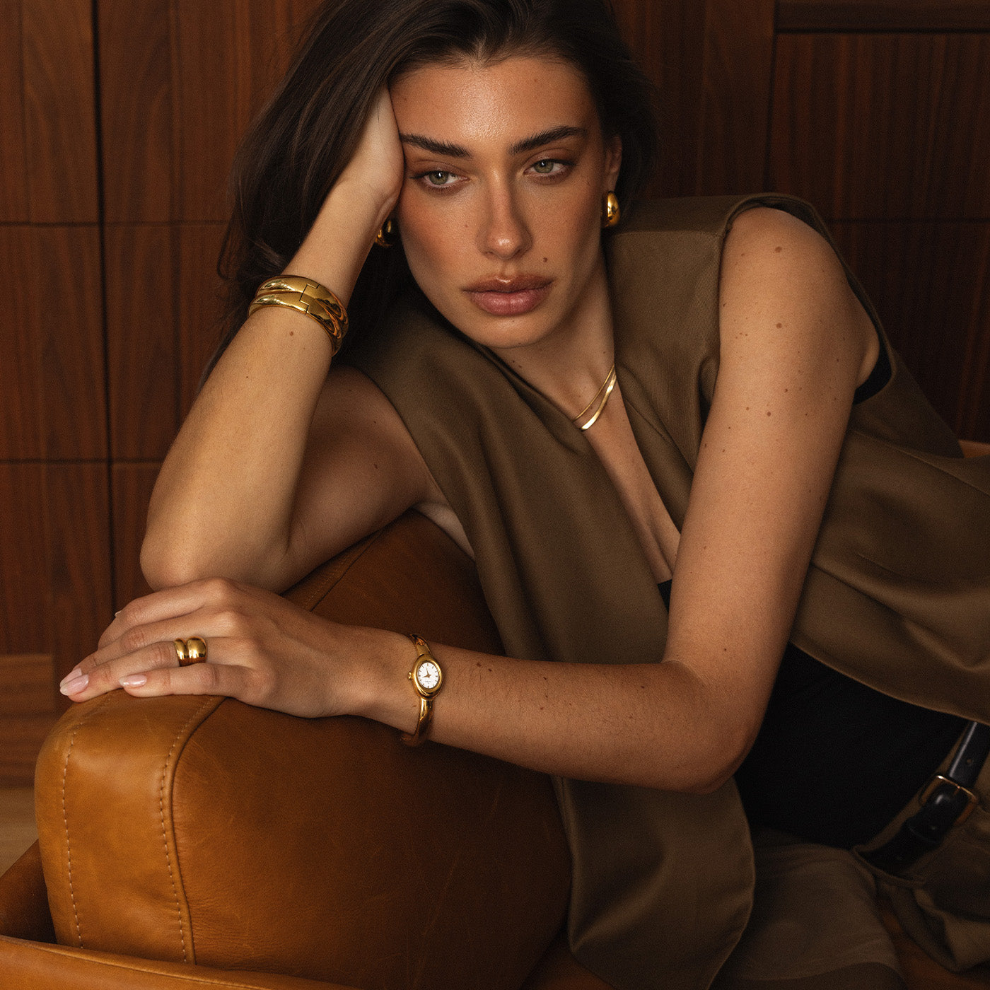 Bruk gullsmykker og klokker som fremhever varme bruntoner med diskret eleganse. Følg sesongens trender med tidløse design og nøye gjennomarbeidede detaljer – perfekt for en koselig dag eller en spesiell kveld.