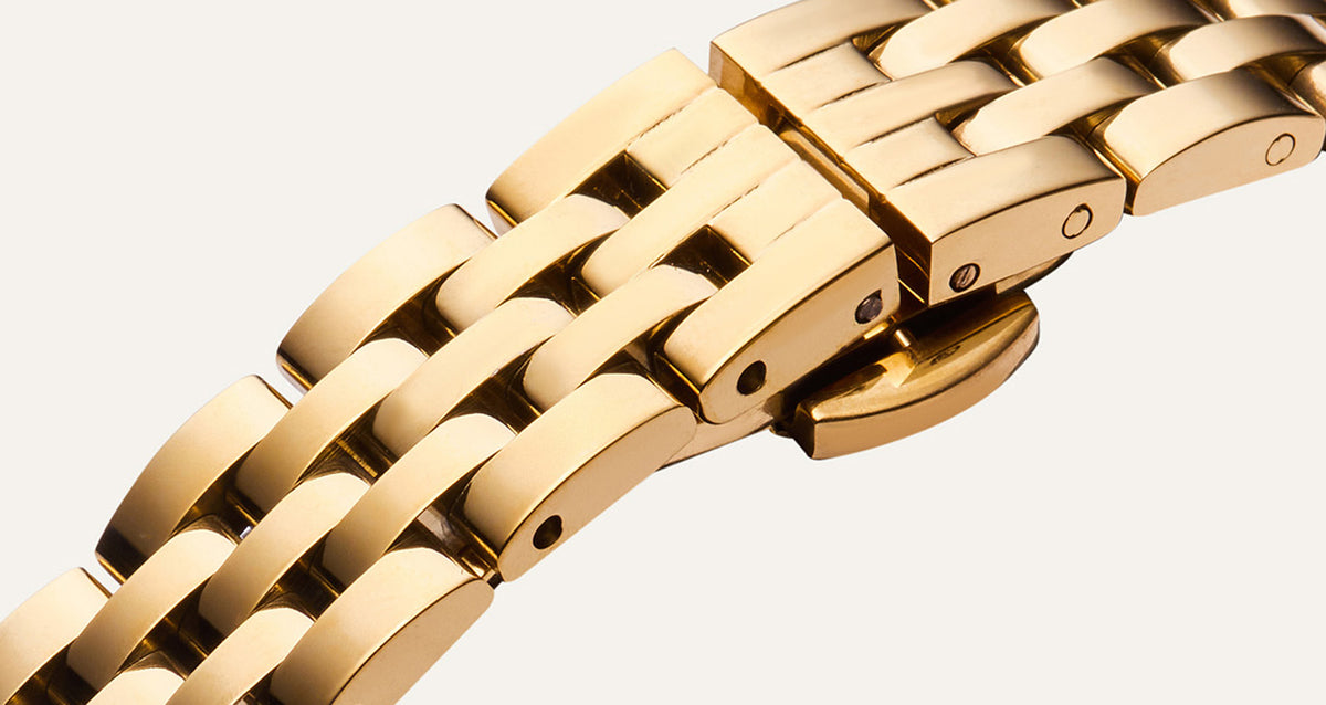 Utskiftbare lenkearmbånd til våre klokker. Velg blant rustfritt stål i sølvfarget, gullfarget og tofarget.
