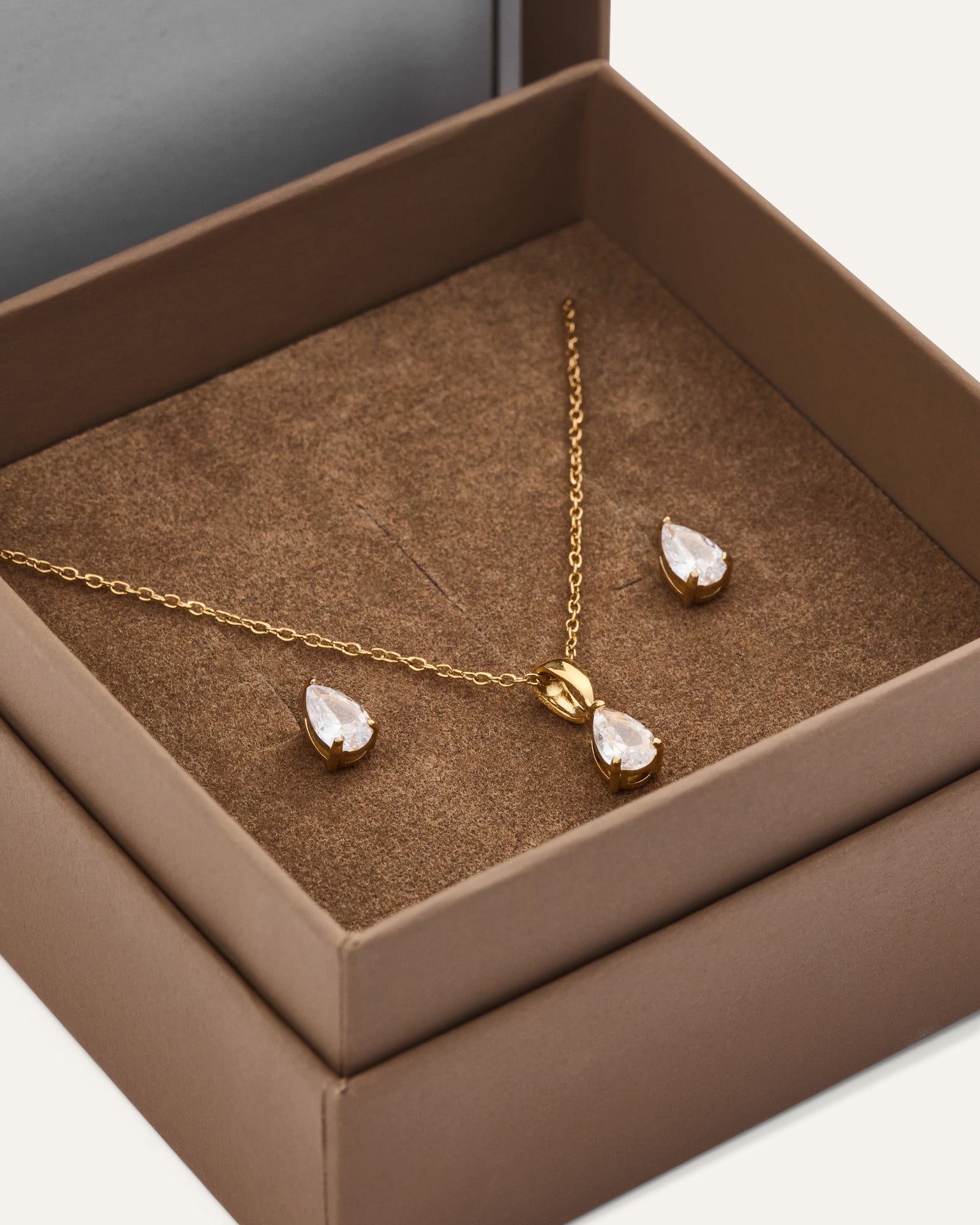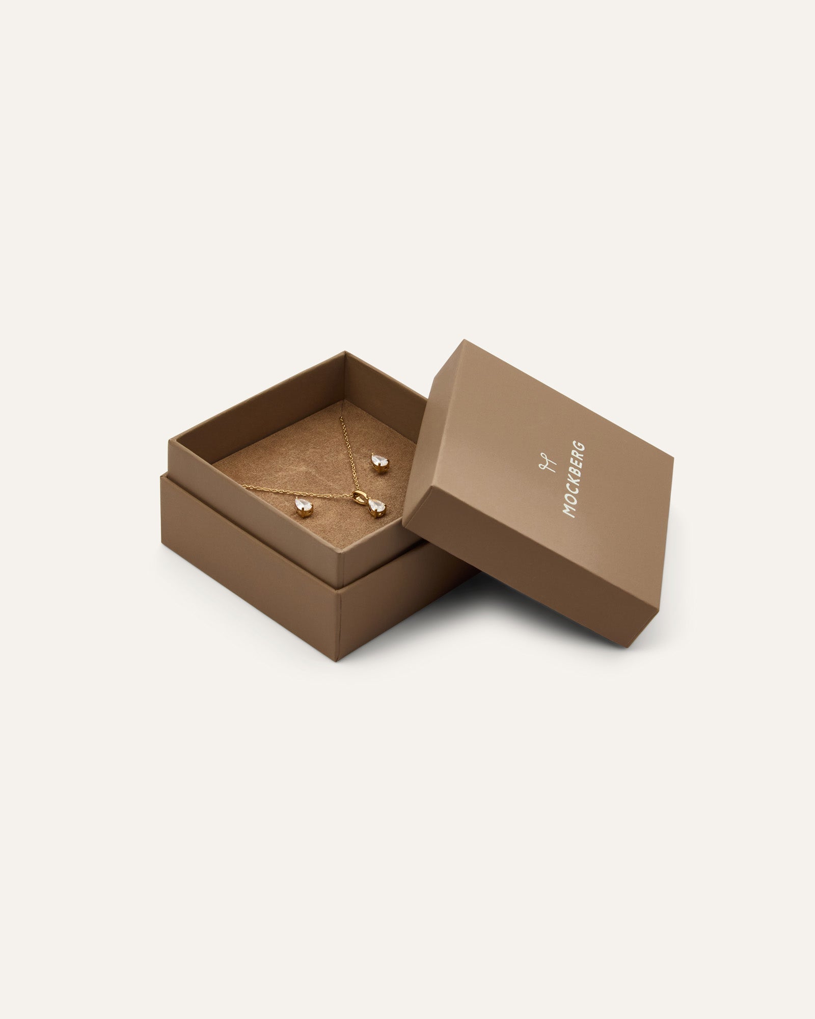 Et stilrent sett med halskjede og våre bestselgende øredobber. Designet for å skape et tidløst, klassisk uttrykk. Den perfekte gaven til en du er glad i – eller til deg selv.