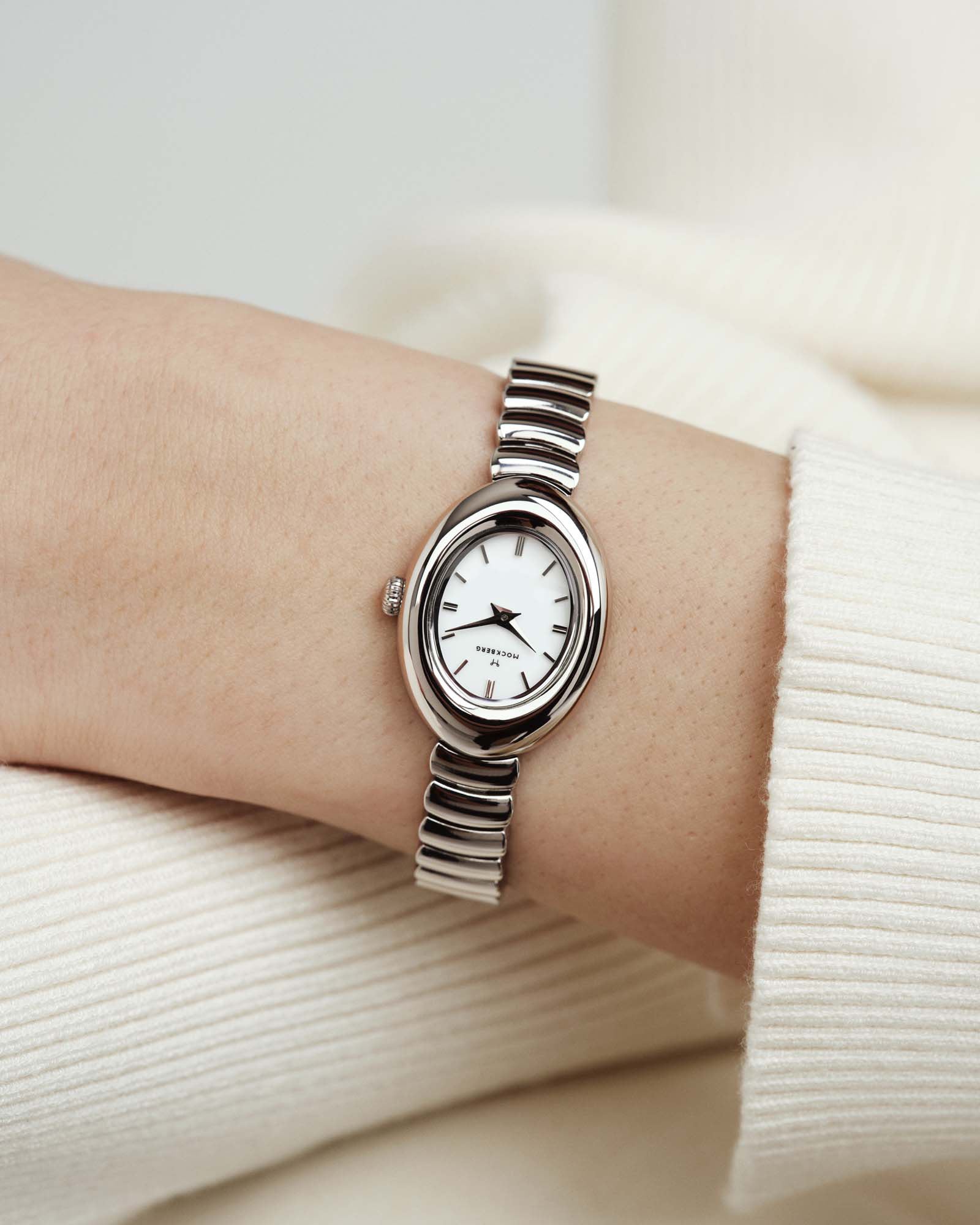 Belle Oval Watch har en mykt avrundet oval urkasse kombinert med en leddrem i buet design. En klokke som både er raffinert og enkel å bruke – uansett anledning.