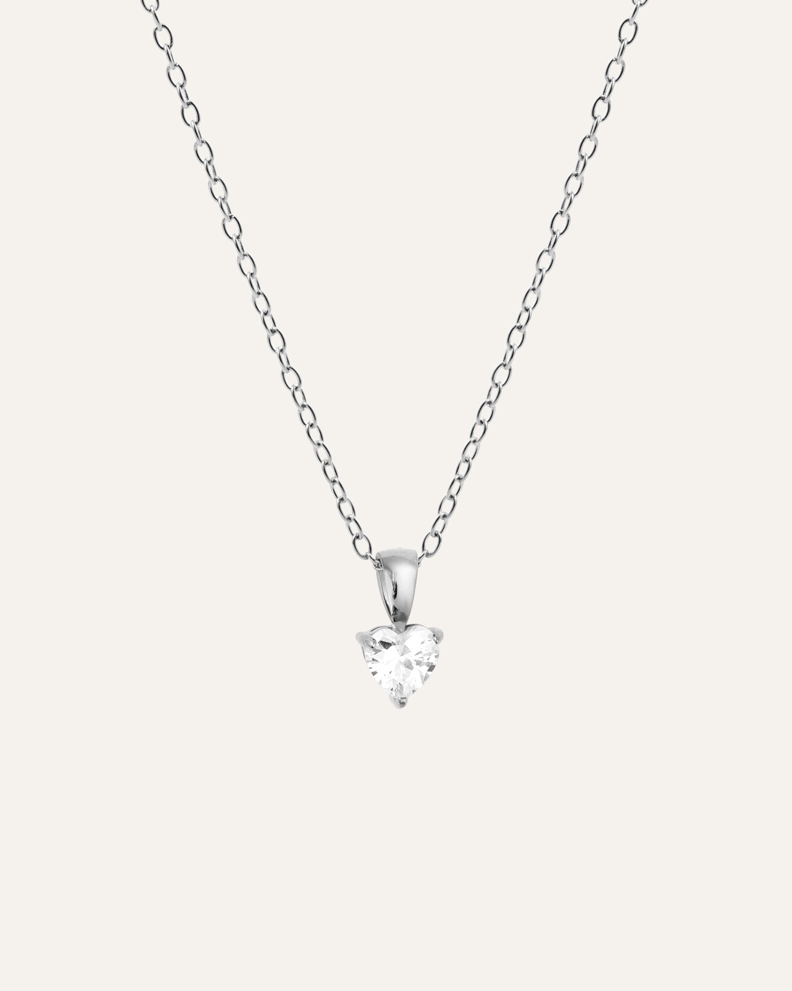 Bonne White Necklace har en hvit hjerteformet stein festet til en tynn lenke. Laget av rustfritt stål med PVD-belegg – slitesterk og vannavstøtende, og den beholder både farge og glans over tid.