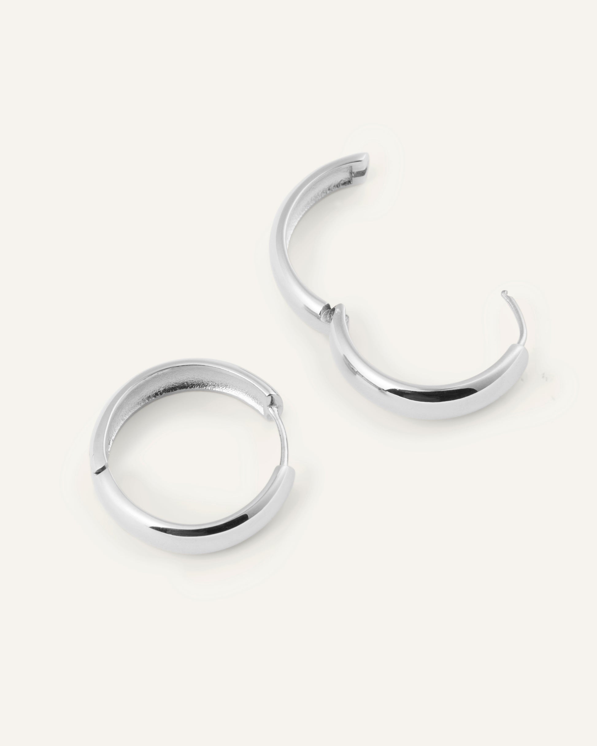 Brave Hoops feature a softly domed, compact design that sits close to the ear. Made from stainless steel with a silver-tone finish, they deliver a clean look that works from day to night. The polished surface offers a bright shine and stands up to everyday wear. Wear them solo for a pared-back look or pair with smaller studs for a personal touch.