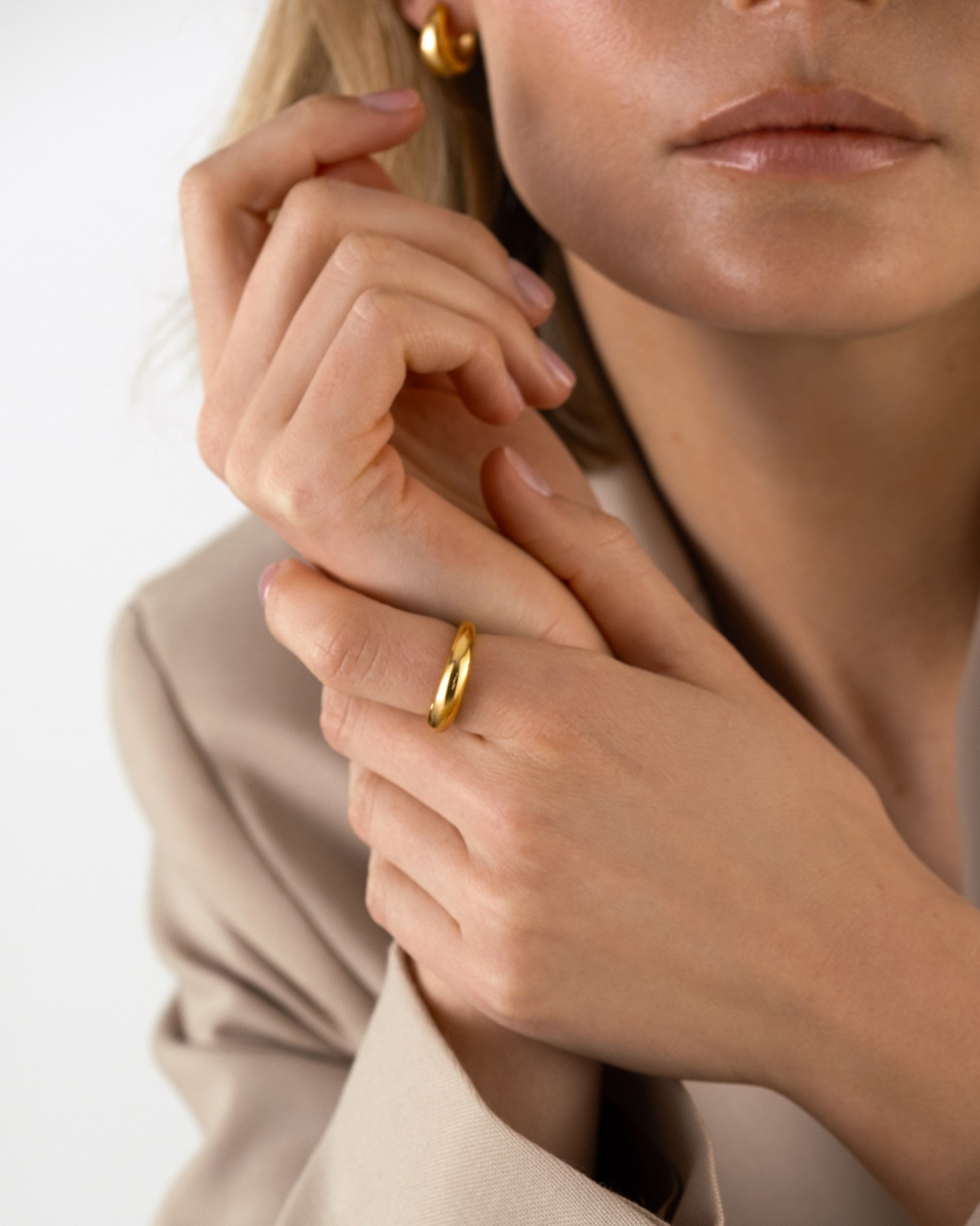 Classic Ring er en tidløs ring med en glatt, polert overflate. Laget av rustfritt stål med 18K gullfarget PVD-belegg – vannavstøtende og slitesterk. Bruk den hver dag – svøm, dusj og tren uten å bekymre deg for at fargen falmer.