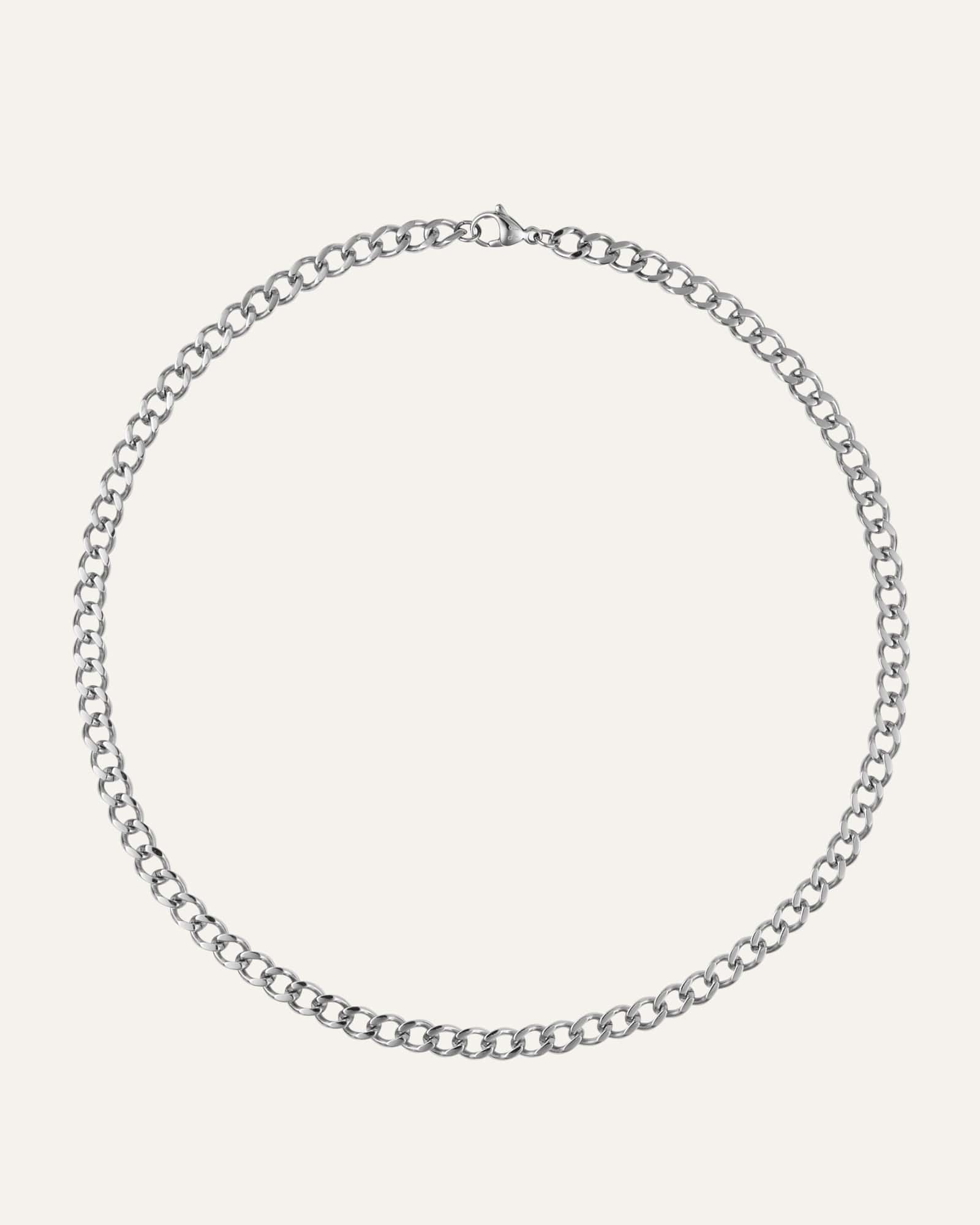 Curb Chain Necklace er et halskjede med curb-lenker og en bred lenke i klassisk design. Lenken er laget av massivt rustfritt stål med PVD-belegg og er både slitesterk og vannavstøtende, noe som gjør at den beholder farge og glans over tid. Forlengelseskjeden kan fjernes om ønskelig.