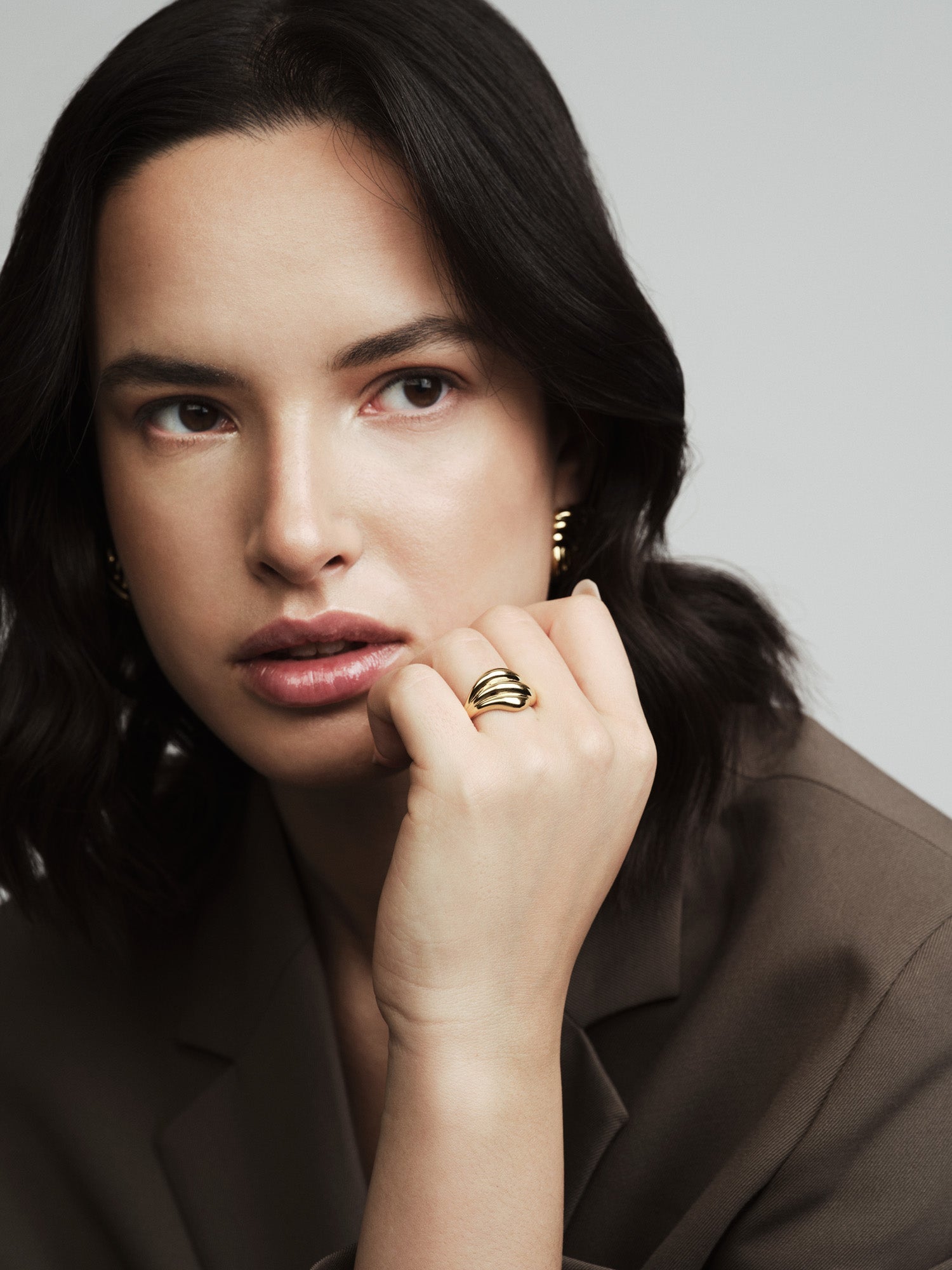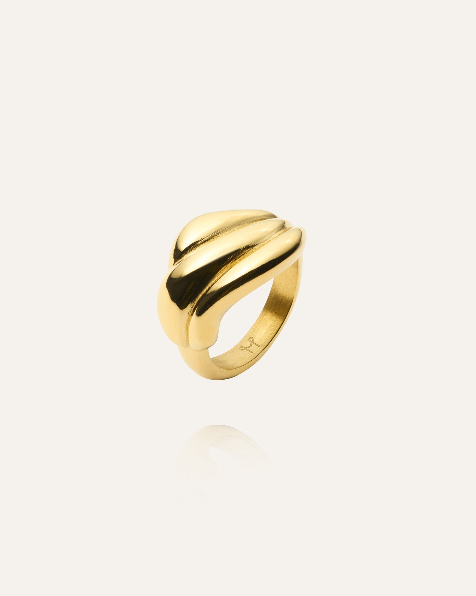 Deco Bold Ring er den perfekte ringen for deg som ønsker et stilig og kraftfullt smykke. Laget av slitesterkt stål med 18K gullfarget PVD-belegg – denne ringen kombinerer solid konstruksjon med tidløs glans. Med sitt dristige og sofistikerte design skaper den en sterk tilstedeværelse og gir stilen din et elegant løft. Den er også vannavstøtende, noe som gjør den til et praktisk og luksuriøst tilskudd i hverdagen. En ring som løfter ethvert antrekk – og lar deg bære eleganse med selvtillit.