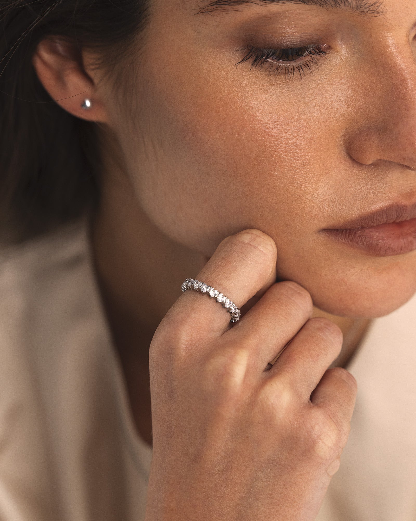 A sleek steel ring featuring a white cubic zirconia, designed to symbolize love that lasts. Minimalist and timeless - a piece of jewelry to wear and cherish now and forever.