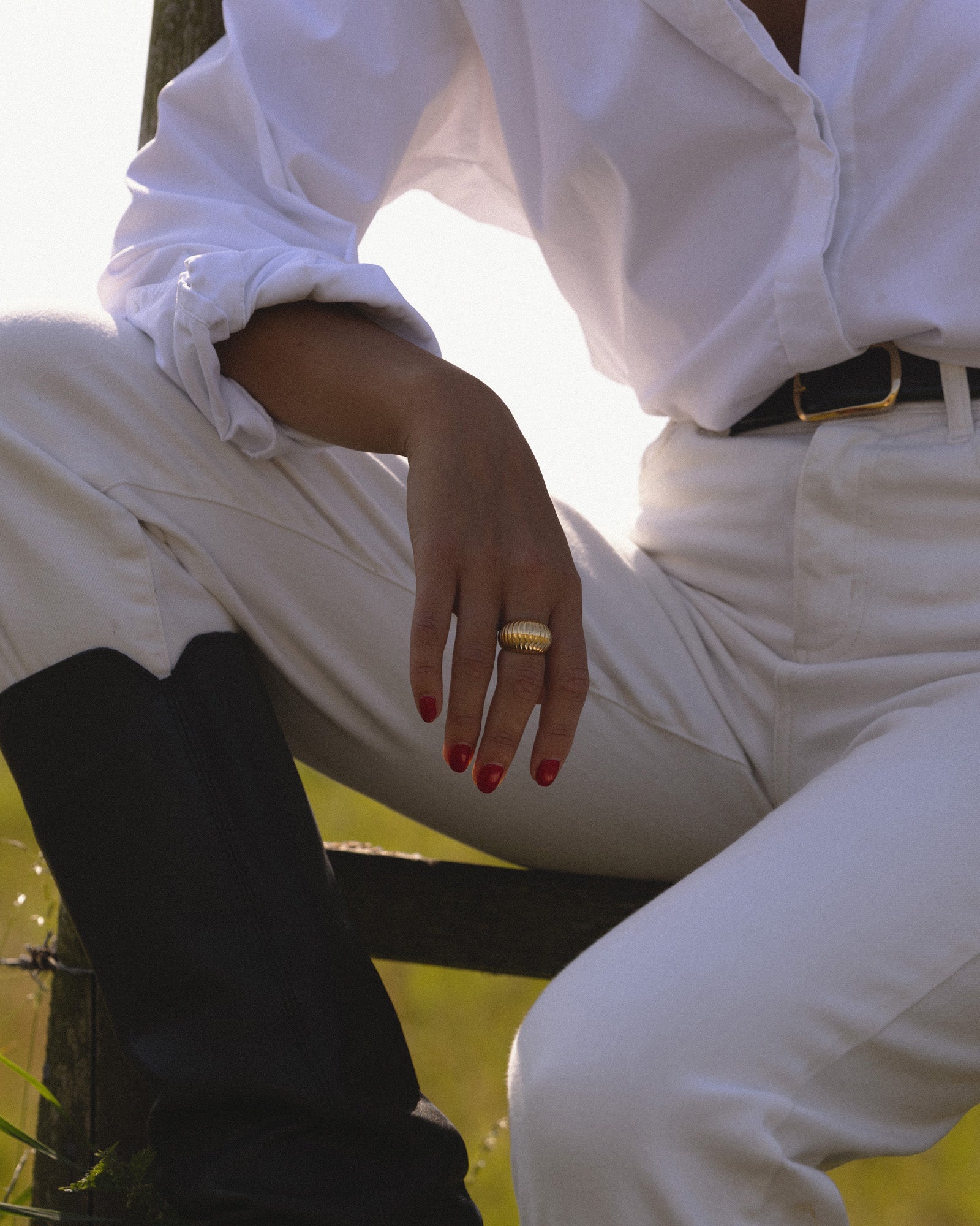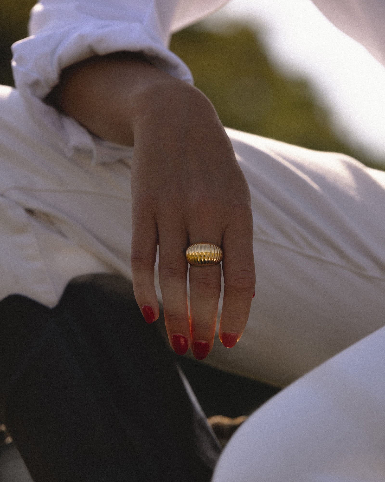 Henriette Ring har en avrundet, rillet overflate som skaper en tydelig struktur og gir et kraftfullt uttrykk. Ringen er inspirert av Henriette Widerberg – en banebrytende operasangerinne og den første kvinnen i Sverige som utga en selvbiografi i 1850. I boken delte hun modig de urettferdighetene hun opplevde i et mannsdominert samfunn – noe som var svært uvanlig på den tiden. Hennes styrke og mot til å bryte normer inspirerer til å gå sin egen vei. Bruk Henriette-ringen som et symbol på å være fryktløs, sterk og klar til å bryte barrierer – akkurat som Henriette Widerberg.