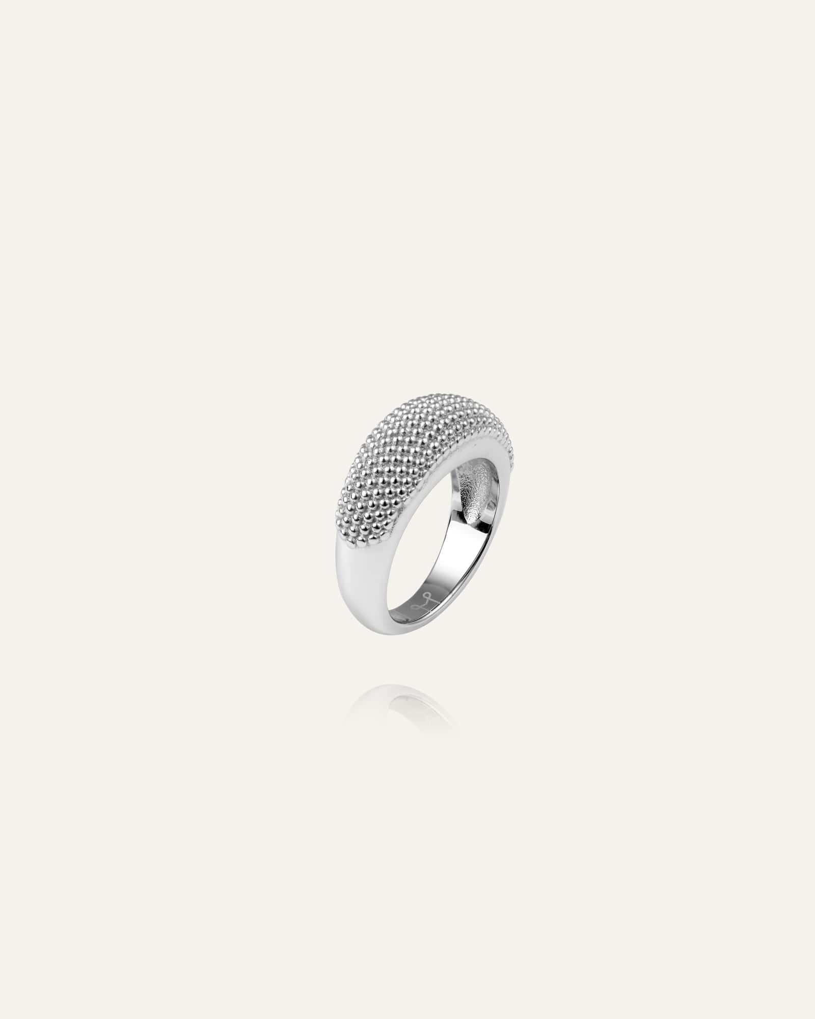 Honey Ring – et avrundet design med strukturert mønster. Laget av massivt rustfritt stål med PVD-belegg – slitesterk og vannavstøtende. Bruk den hver dag – svøm, dusj og tren uten å bekymre deg for at fargen falmer.