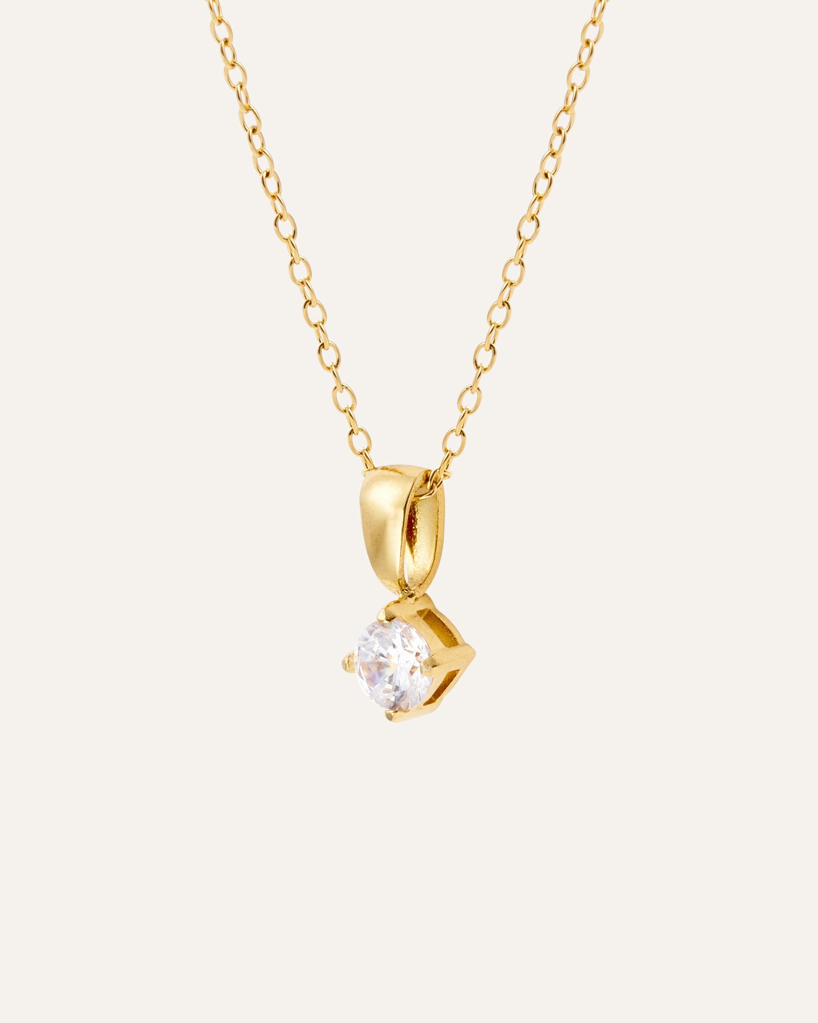 Jolie White Necklace er et minimalistisk halskjede med en rund hvit stein festet til en tynn lenke. Laget i rustfritt stål med PVD-belegg – slitesterkt og vannavstøtende, og bevarer både farge og glans over tid.