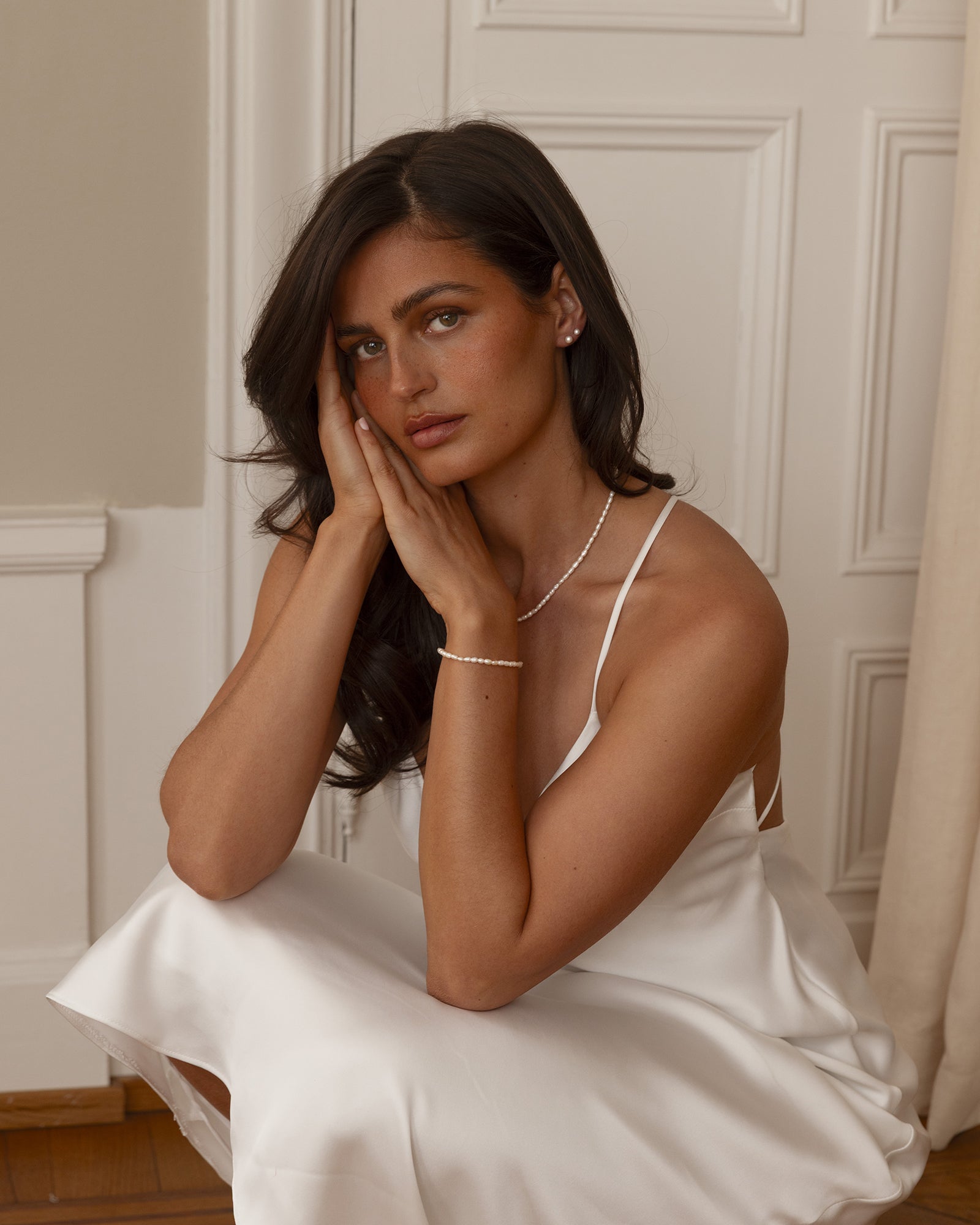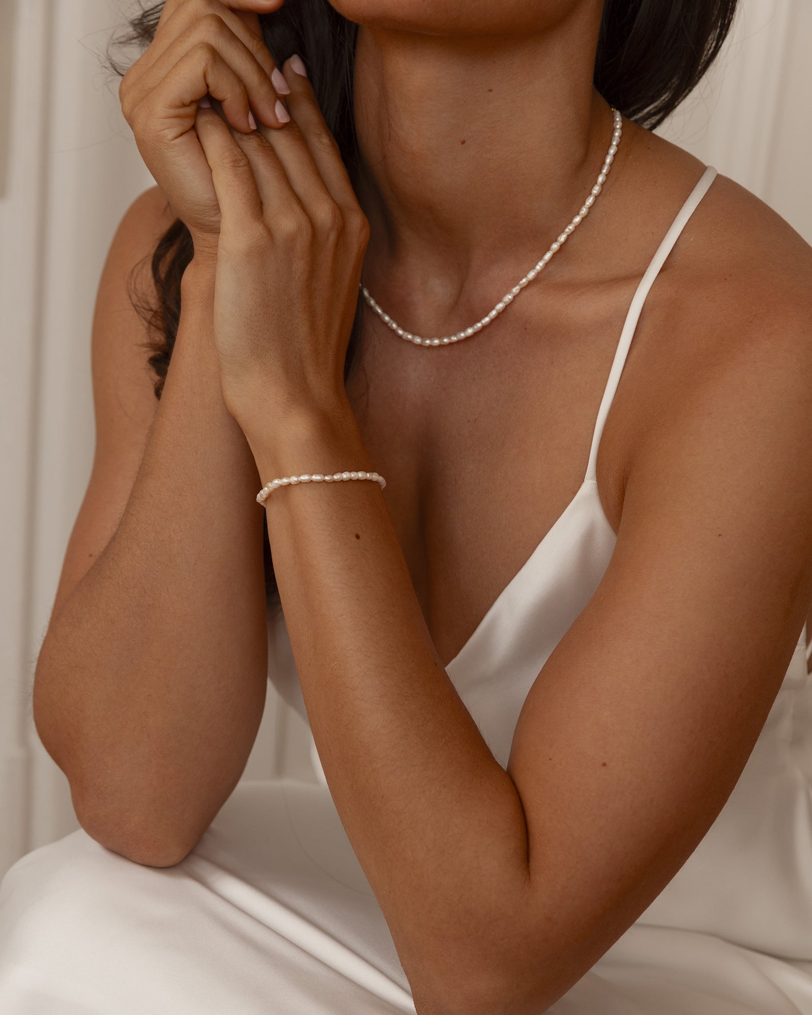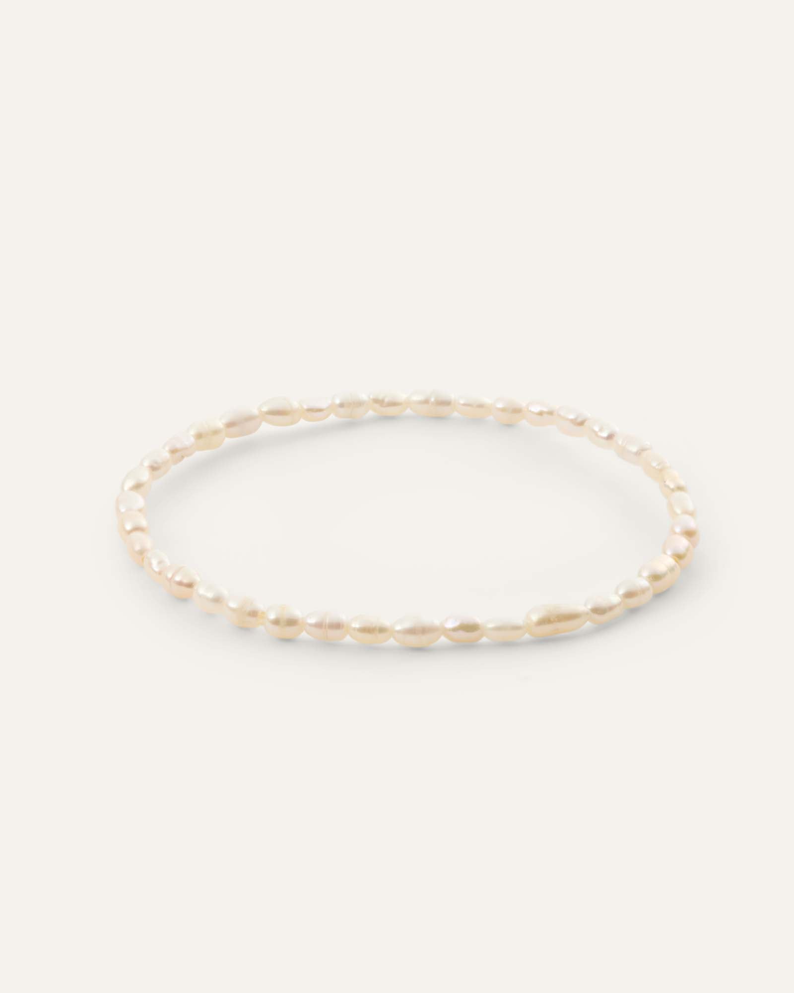 The Pearl Bracelet is a delicate piece featuring freshwater pearls on a flexible elastic band, making it easy to put on and take off. The compact length sits comfortably close to the wrist, adding a subtle accent. The natural luster of the pearls makes this bracelet a timeless addition to your jewelry wardrobe. Wear it on its own or combine with other sizes for a harmonious bracelet stack.