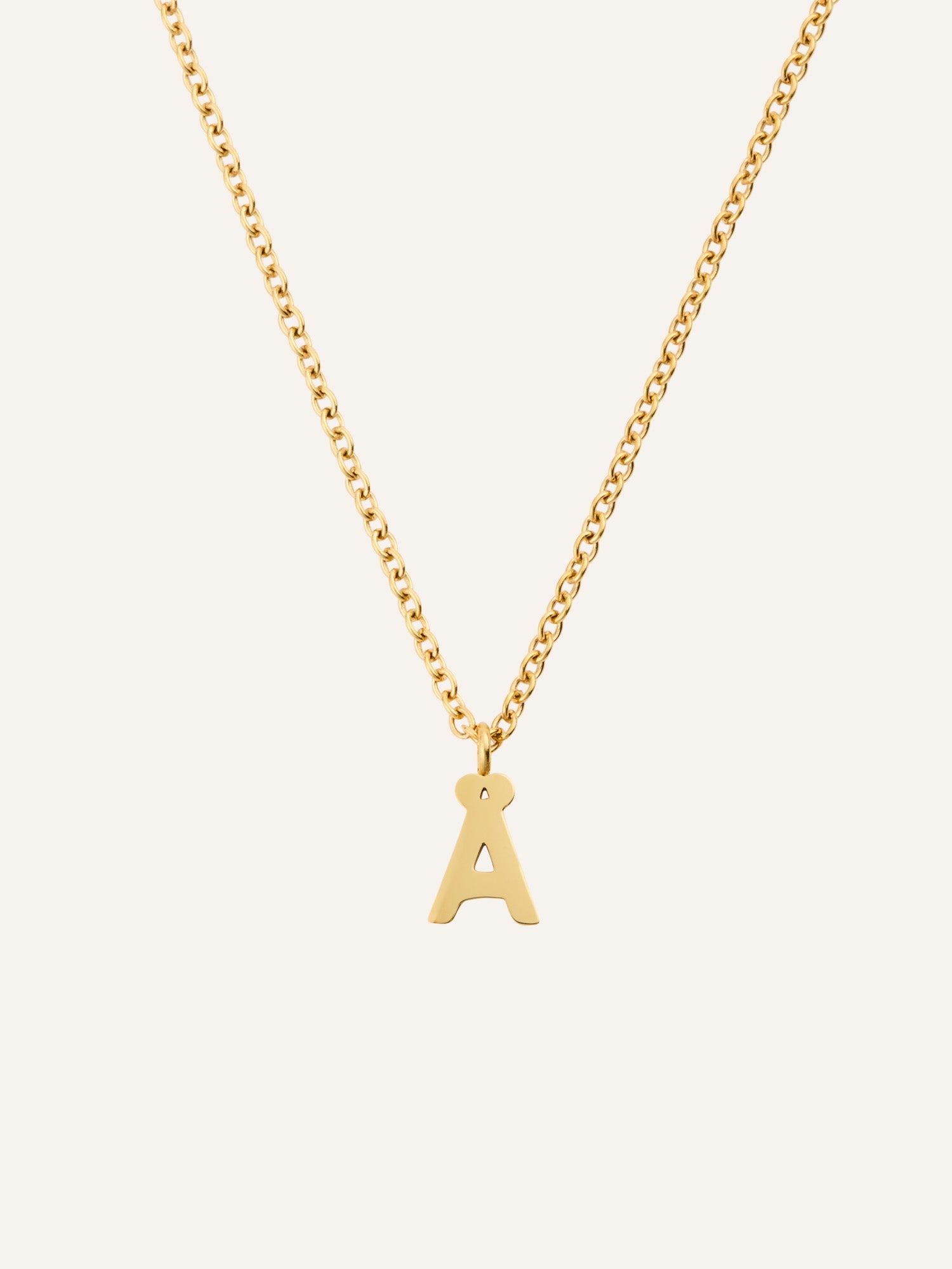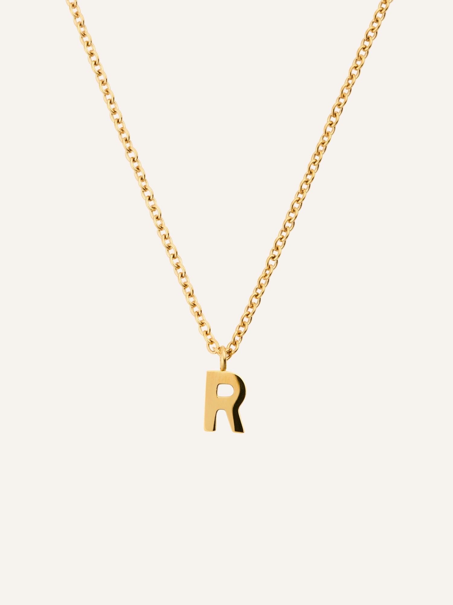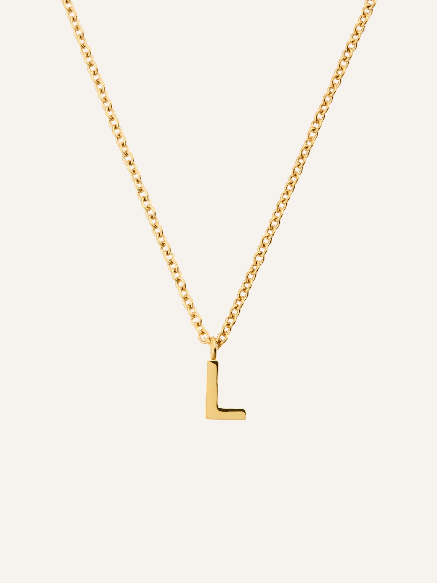 Et personlig smykke med et minimalistisk uttrykk. Petite Letter Necklace har en nett lenke og et lite bokstavanheng som gir et subtilt uttrykk – like vakkert alene som sammen med andre kjeder. Laget i rustfritt stål med 18K gullfarget PVD-belegg for en slitesterk og vannavstøtende finish som holder på fargen over tid.
