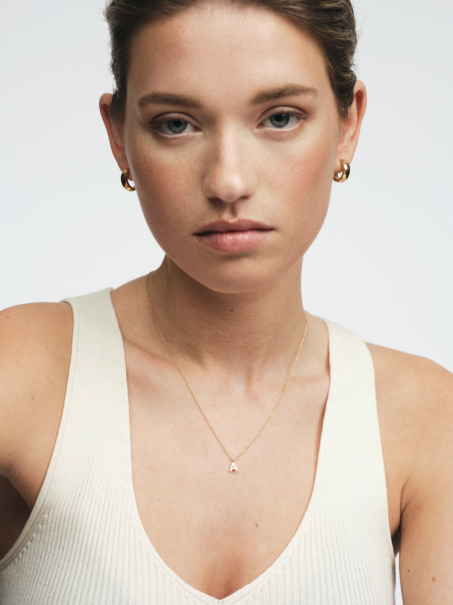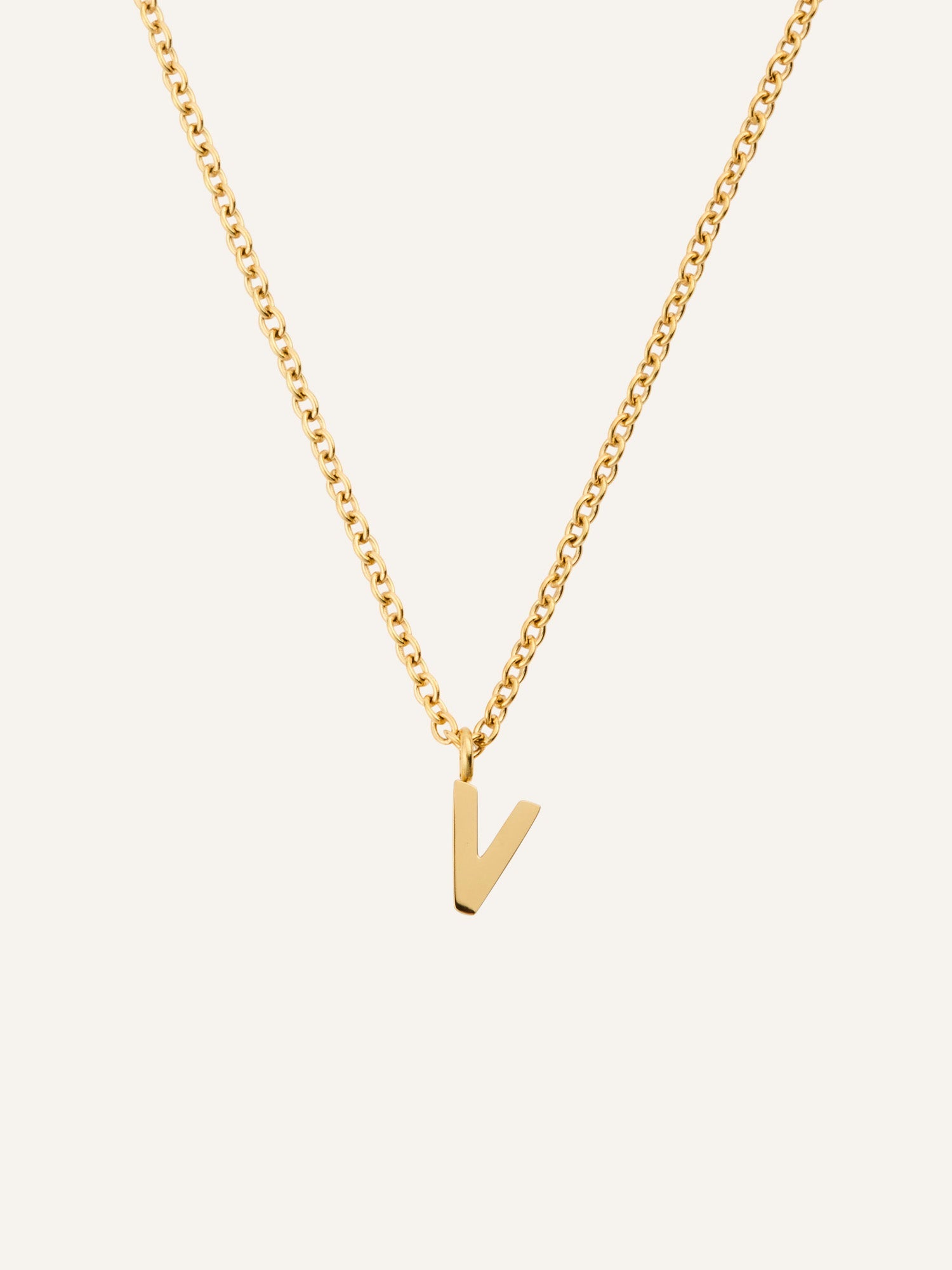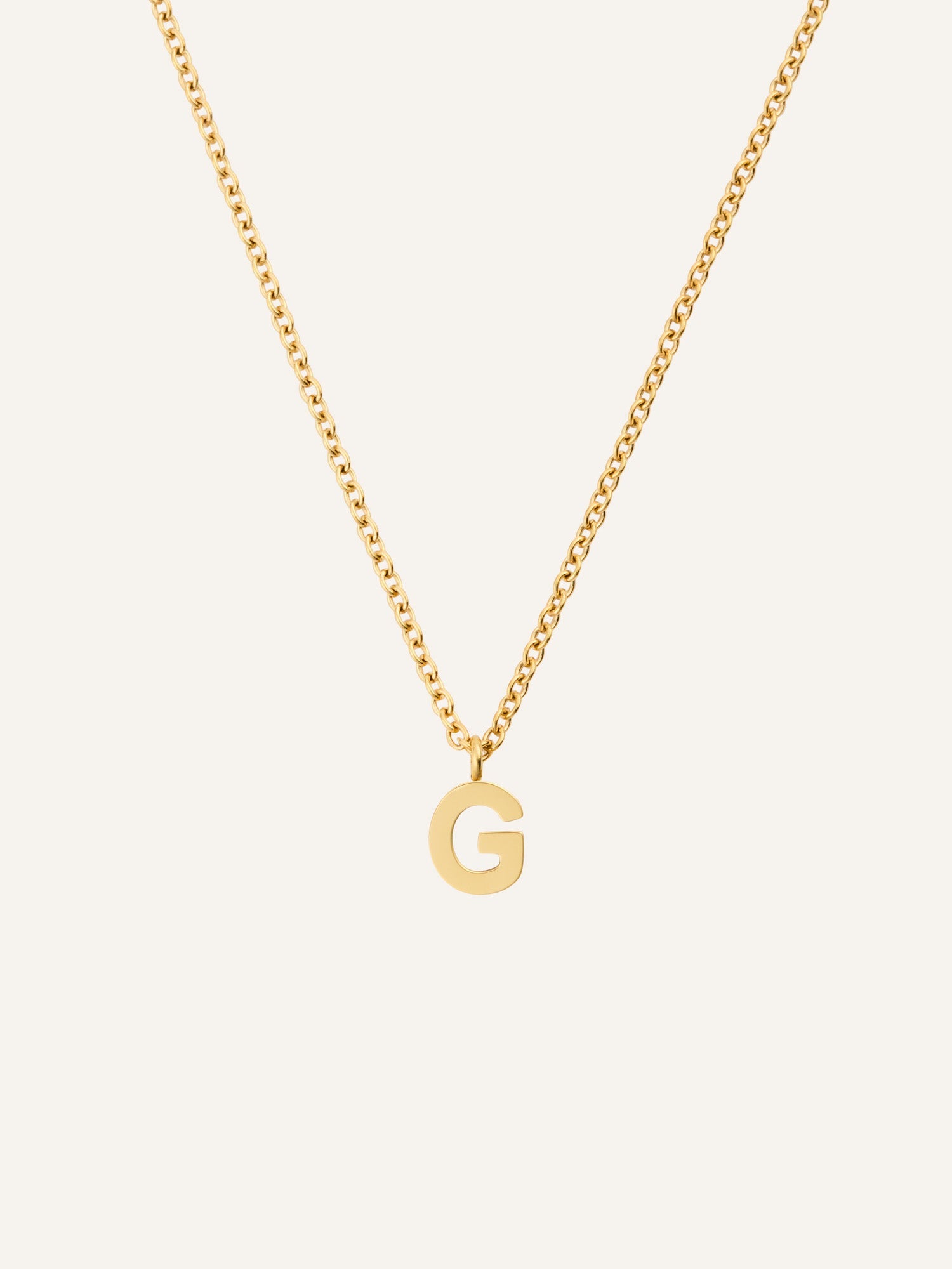 Et personlig smykke med et minimalistisk uttrykk. Petite Letter Necklace har en nett lenke og et lite bokstavanheng som gir et subtilt uttrykk – like vakkert alene som sammen med andre kjeder. Laget i rustfritt stål med 18K gullfarget PVD-belegg for en slitesterk og vannavstøtende finish som holder på fargen over tid.