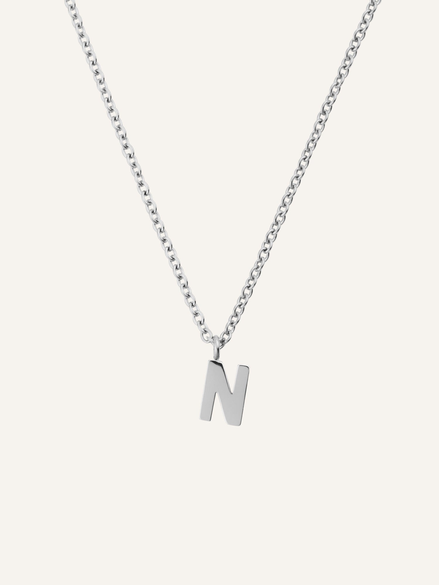 Et personlig smykke med et minimalistisk uttrykk. Petite Letter Necklace har en nett lenke og et lite bokstavanheng som gir et subtilt uttrykk – like vakkert alene som sammen med andre kjeder. Laget i rustfritt stål for en slitesterk og vannavstøtende finish som bevarer glansen over tid.