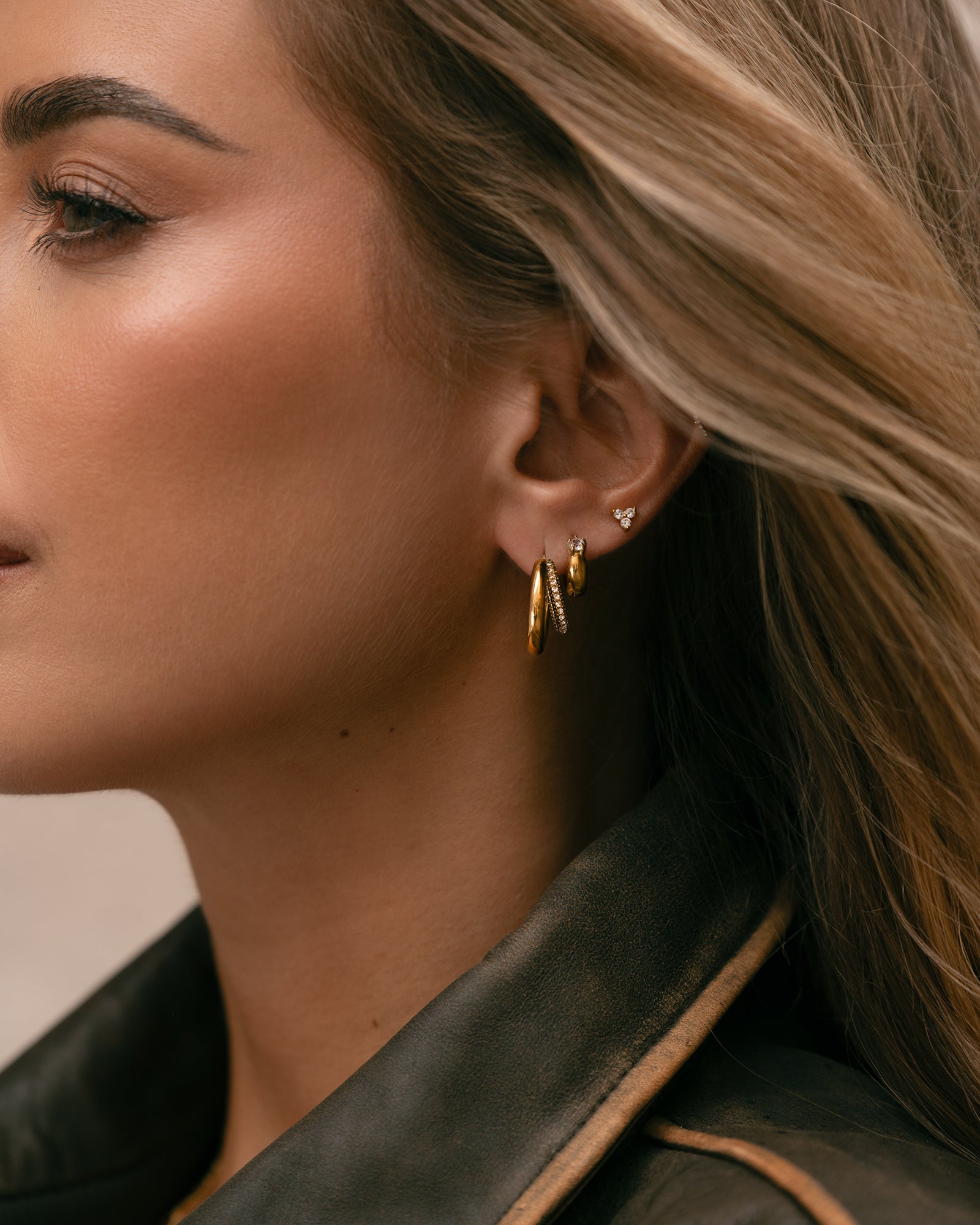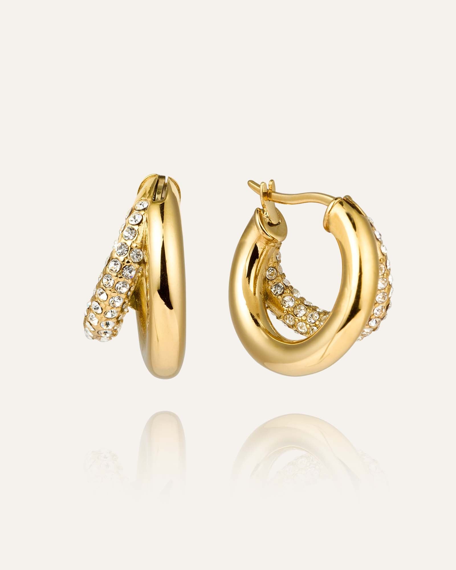 Raya Gold Hoops hug the ear with warm, golden light that flatters every angle. Lightweight, comfortable and water‑resistant.