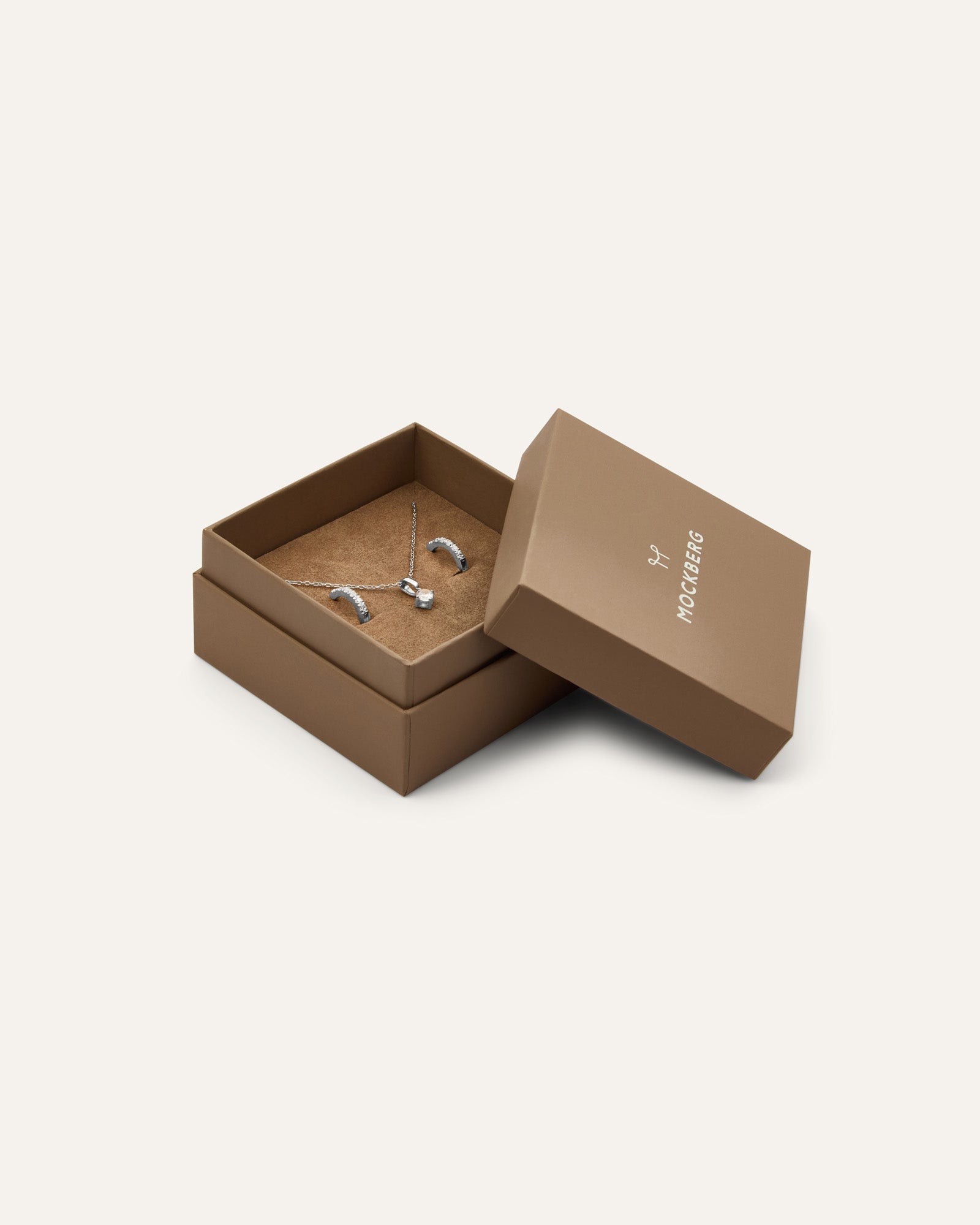Et stilrent sett med et halskjede og våre bestselgende øredobber. Designet for å skape et tidløst og klassisk uttrykk. Den perfekte gaven til en du er glad i – eller til deg selv.