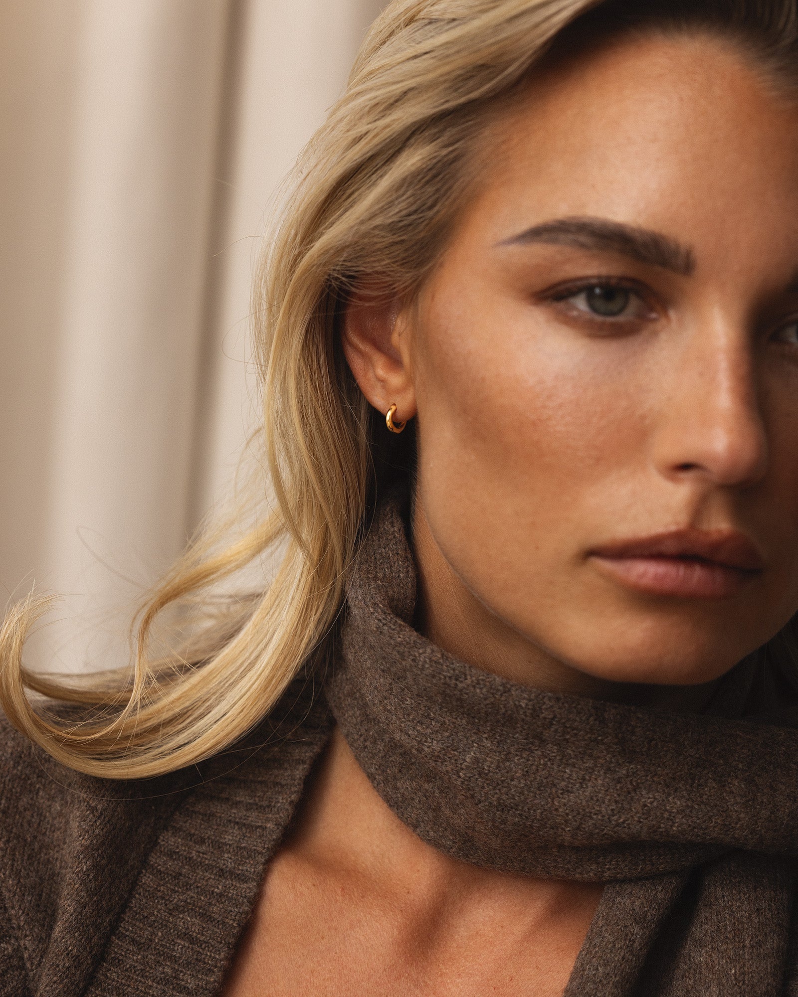 Slim Gold Hoops feature a thin, softly rounded shape that shimmers with a warm gold tone. The timeless design offers a clean look and is easy to wear and style from day to night. Wear them solo for a pared-back style or pair with other earrings for a personal touch.