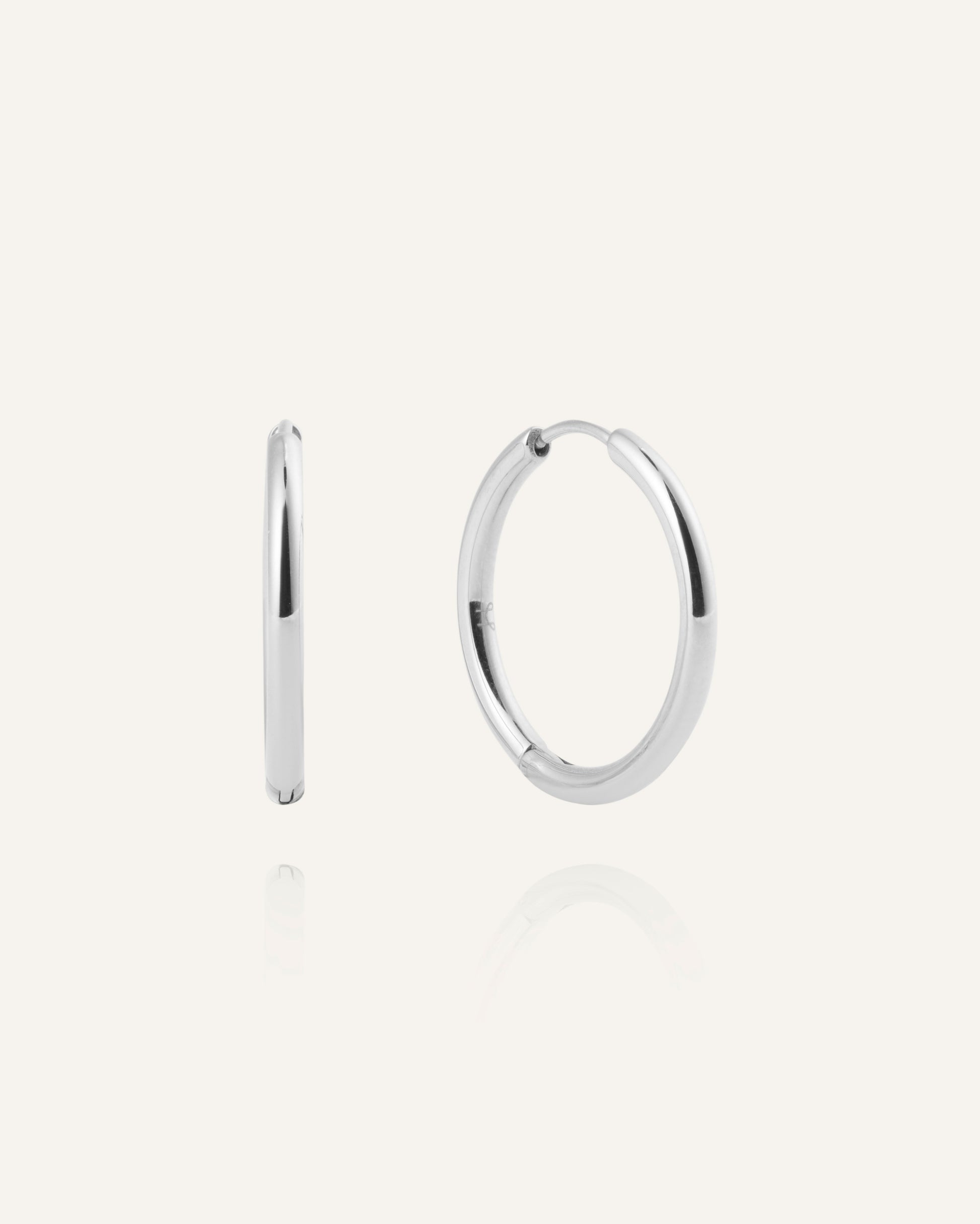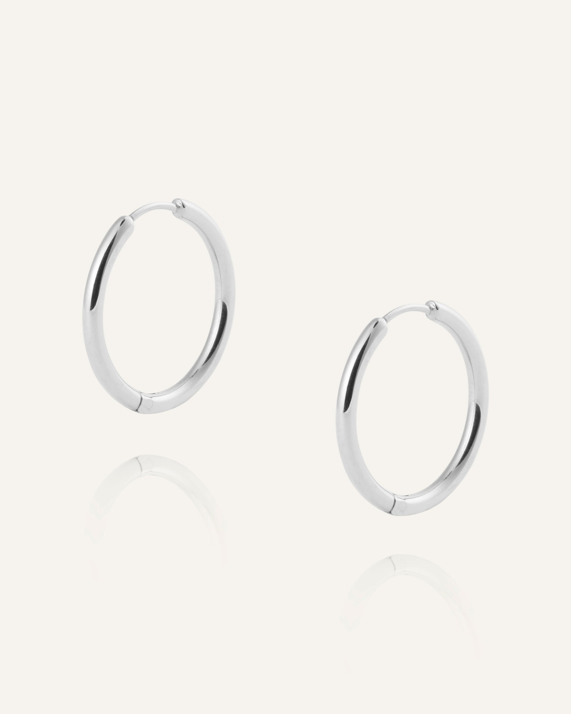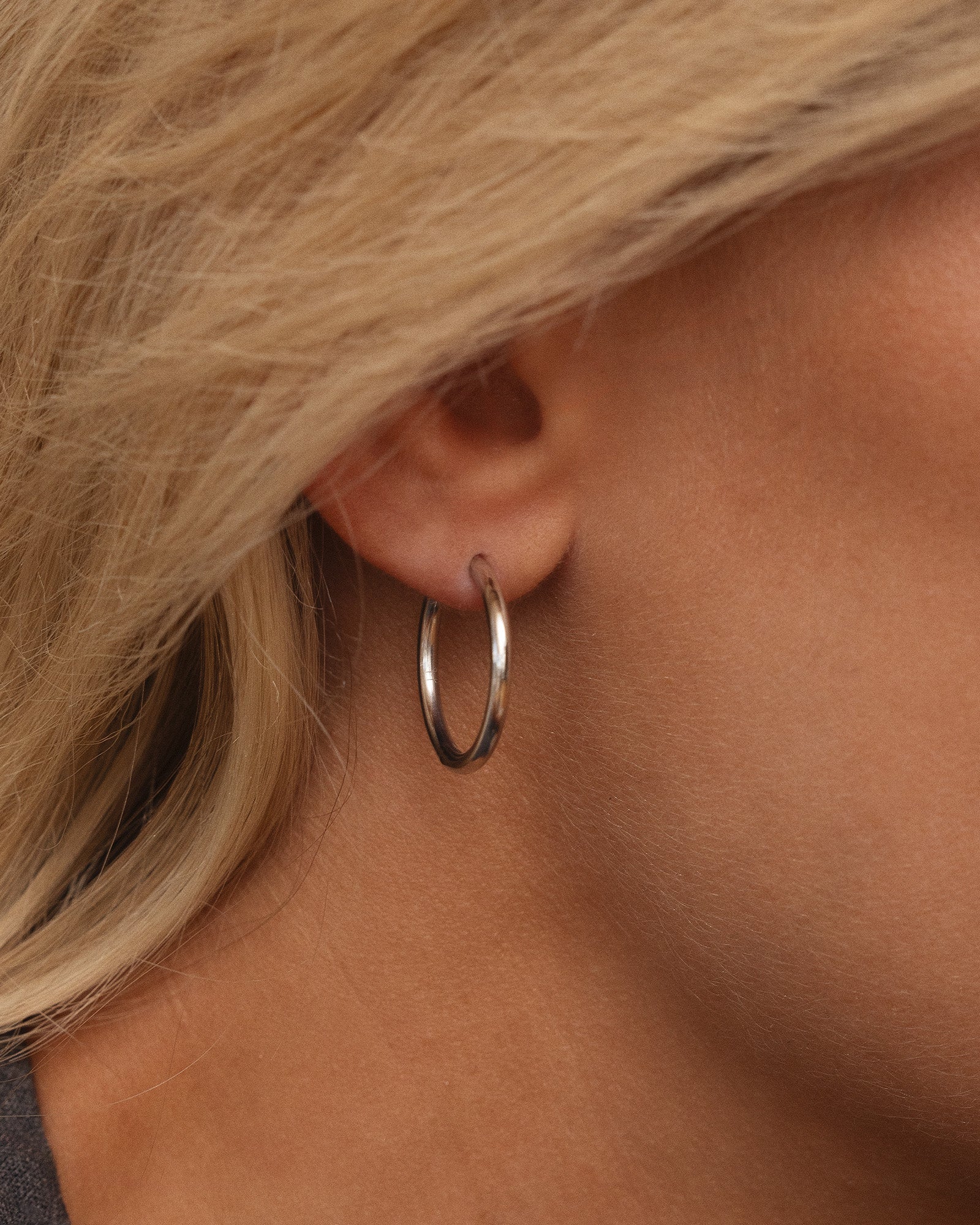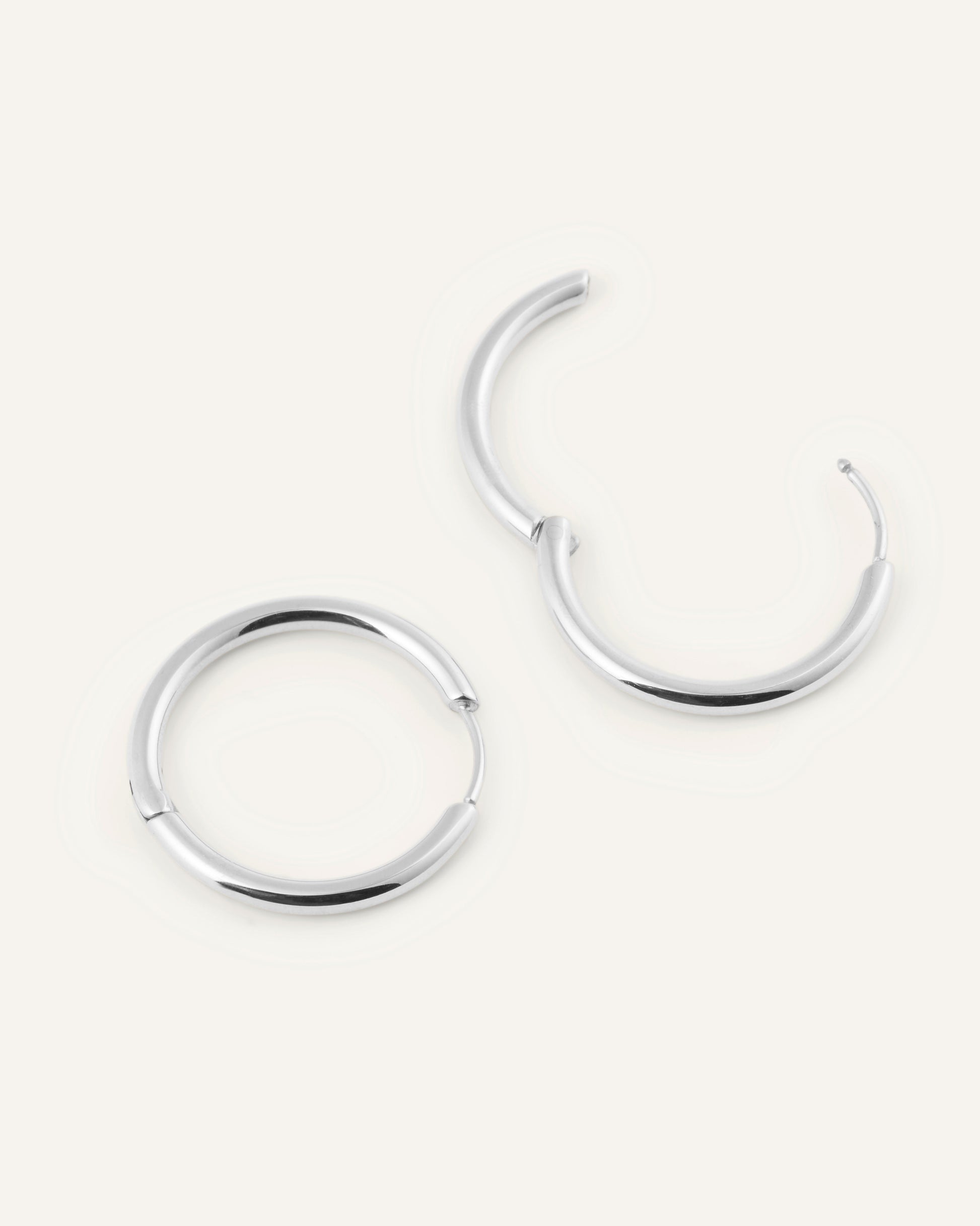 Slim Steel Hoops feature a slender, elegant profile that catches the light in a crisp silver tone. The pared-back design delivers a clean, refined finish that works just as well solo as layered with other earrings.