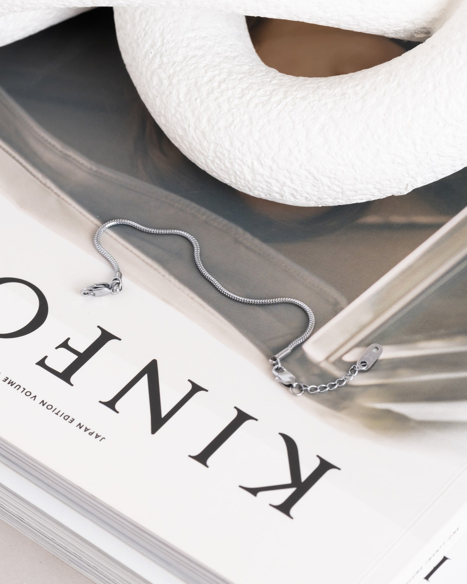 Et klassisk armbånd med mykt flytende design. Laget av rustfritt stål med PVD-belegg – slitesterkt og vannavstøtende, og bevarer både farge og glans over tid. Forlengelseskjeden kan enkelt fjernes for en tilpasset passform.