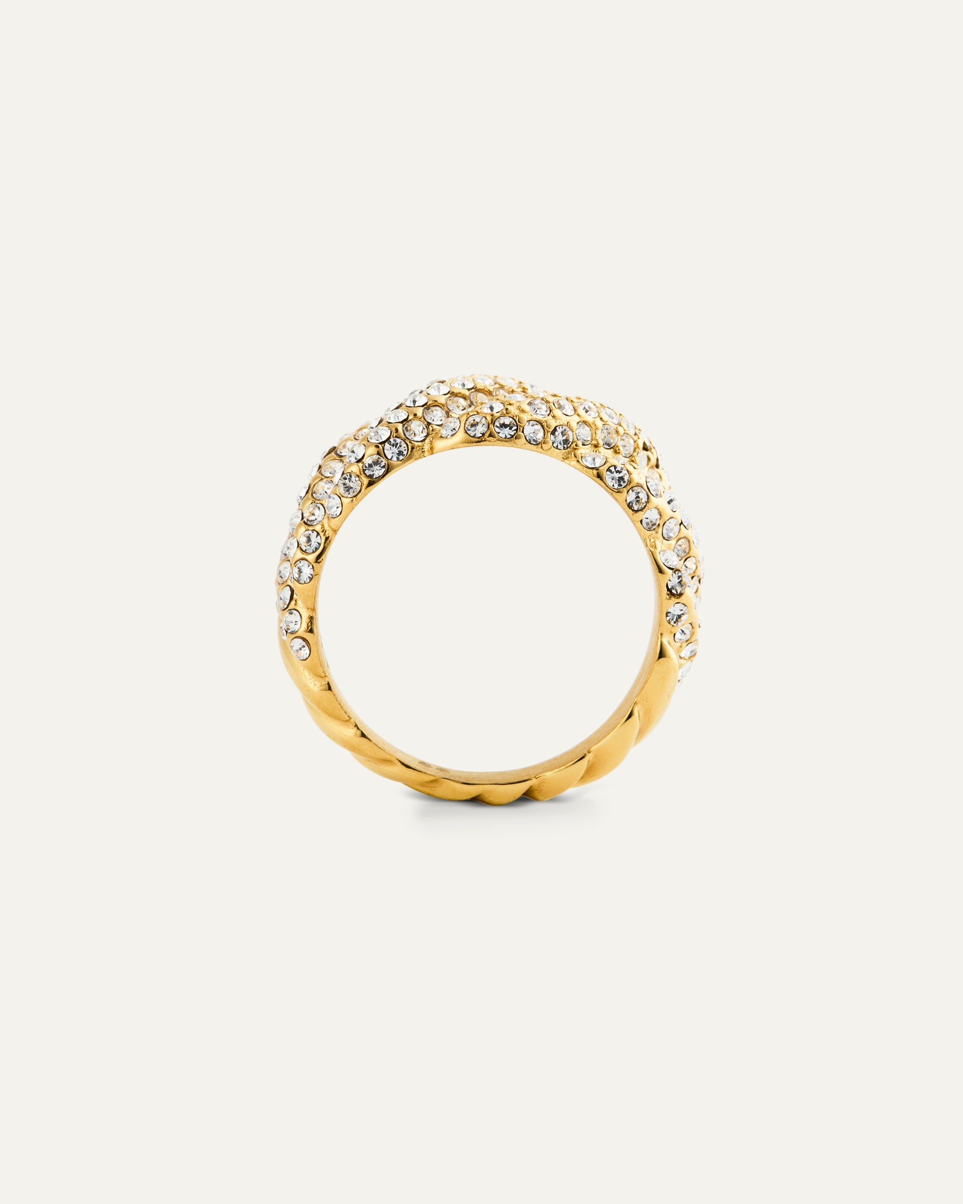Warm shine and generous pavé meet in a twisted design that beautifully catches the light. The gold color adds presence without being loud – a favorite you’ll love to wear every day. Just as elegant on its own as it is stacked with other rings.