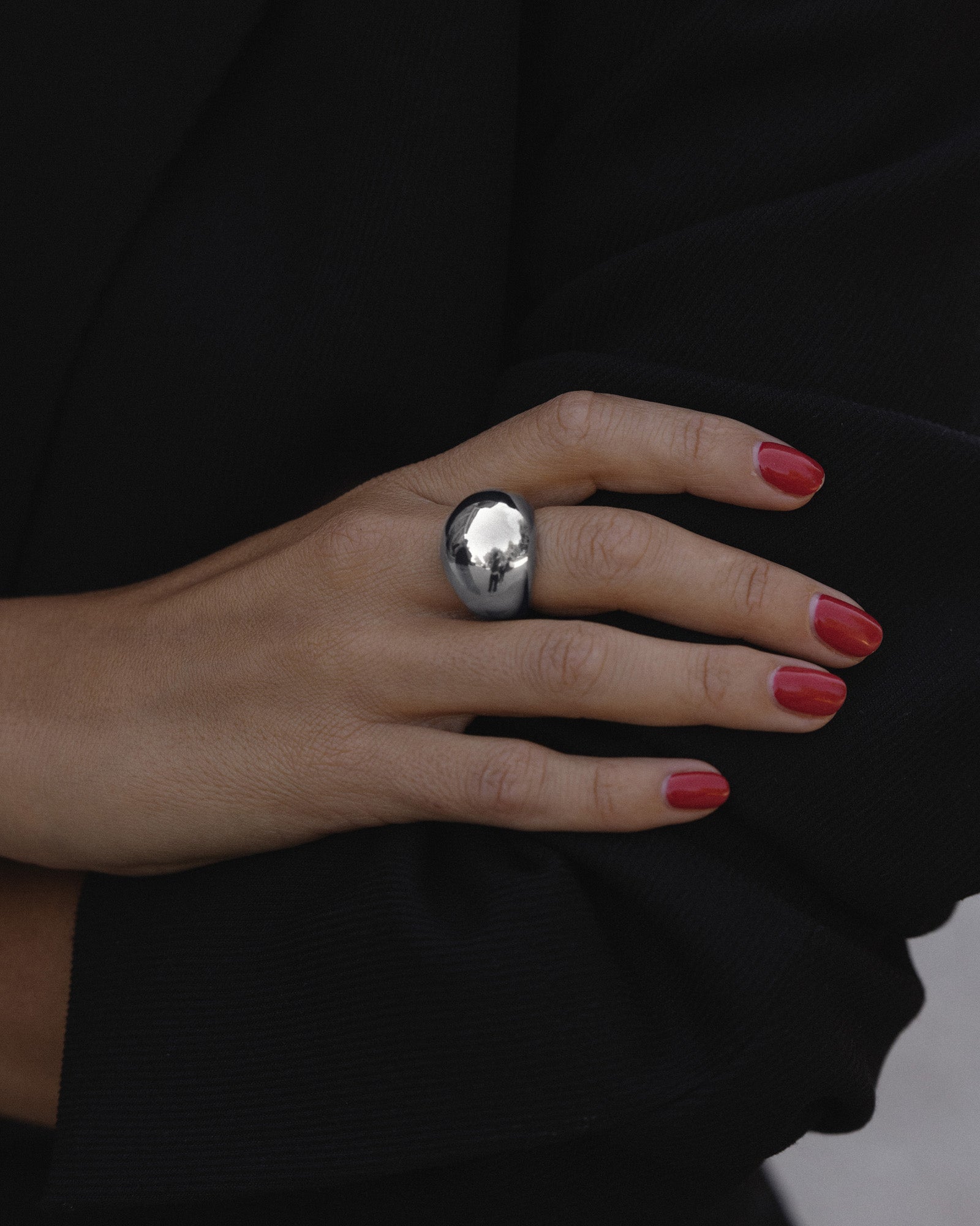 Sonja Ring er en bred, glatt statement-ring med avrundet form og blank overflate. Ringen er inspirert av Sonja Kovalevsky – den første kvinnelige professoren i matematikk, utnevnt i 1884. Hennes banebrytende arbeid og suksess i en mannsdominert akademisk verden er en sterk inspirasjon for oss alle. Sonjas briljans og utholdenhet minner oss på at barrierer kan brytes, og at historien kan endres. Bruk Sonja-ringen som en hyllest til kvinnelig lederskap og intellekt – og la den være ditt symbol på mot og suksess i enhver sammenheng. Laget av massivt rustfritt stål med slitesterkt PVD-belegg – vannavstøtende og slitesterk. Bruk den hver dag – svøm, dusj og tren uten bekymring for at fargen falmer.