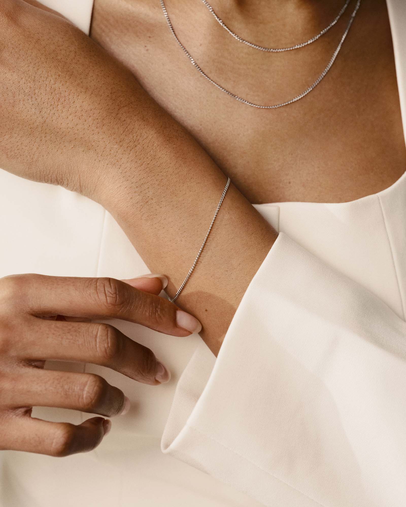 Delicate but with just the right amount of weight on your wrist, this thin curb chain bracelet feels like a second skin. Wear it alone for a barely-there finish, or layer it up for something more personal.