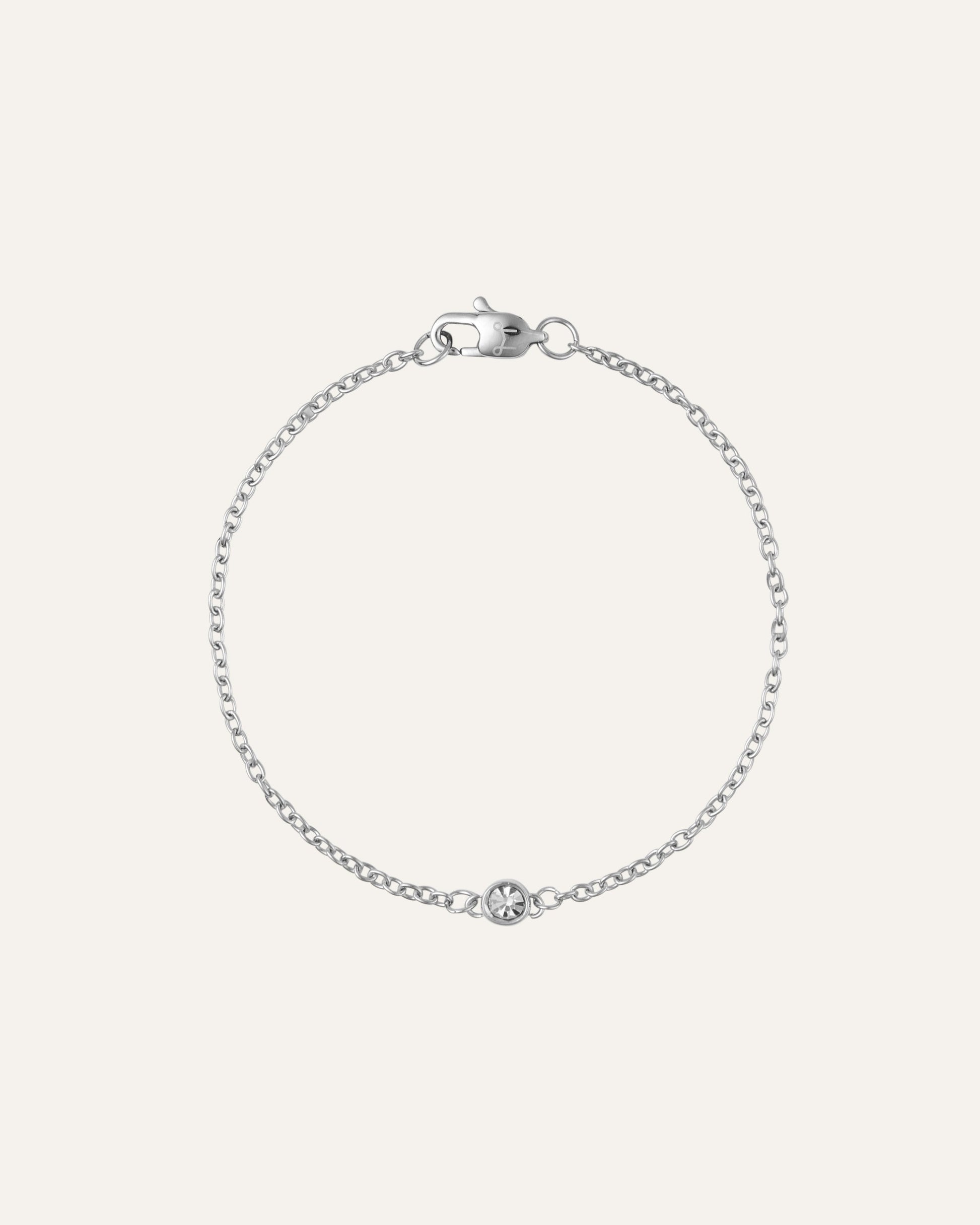 Tidløs eleganse i et minimalistisk design. Det tynne armbåndet har en delikat, finlenket kjede med en rund hvit kubisk zirkonia. Laget av rustfritt stål med PVD-belegg – slitesterkt og vannavstøtende, og bevarer både farge og glans over tid. Forlengelseskjeden kan enkelt fjernes for en tilpasset passform.