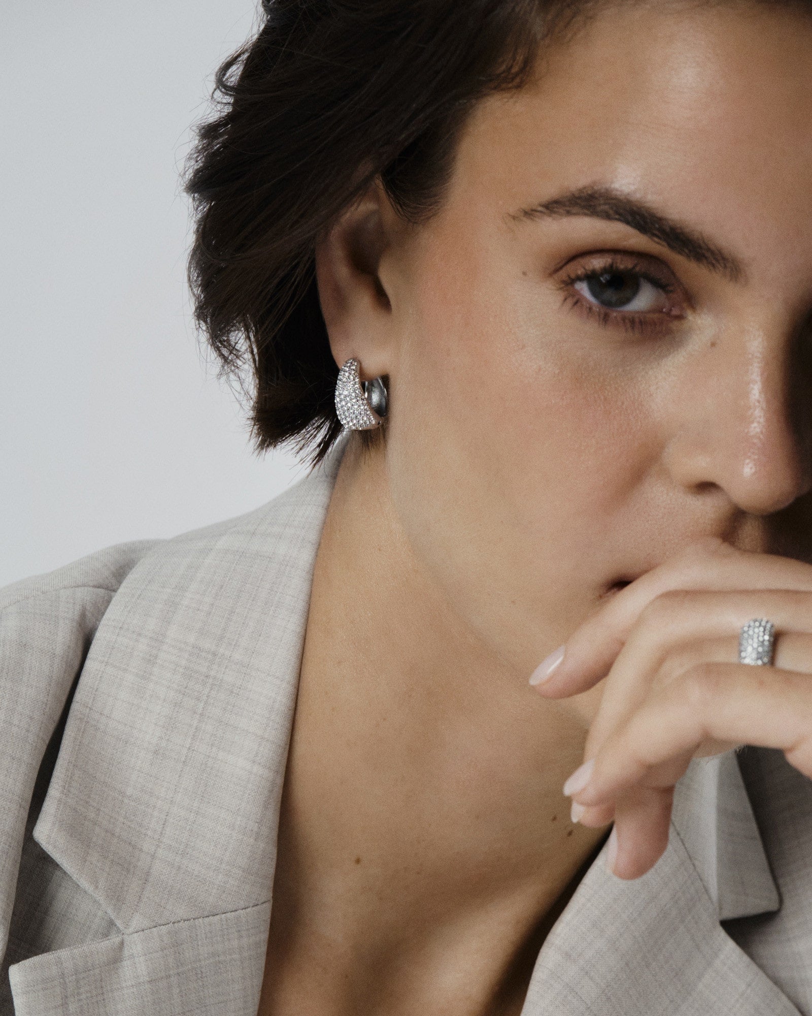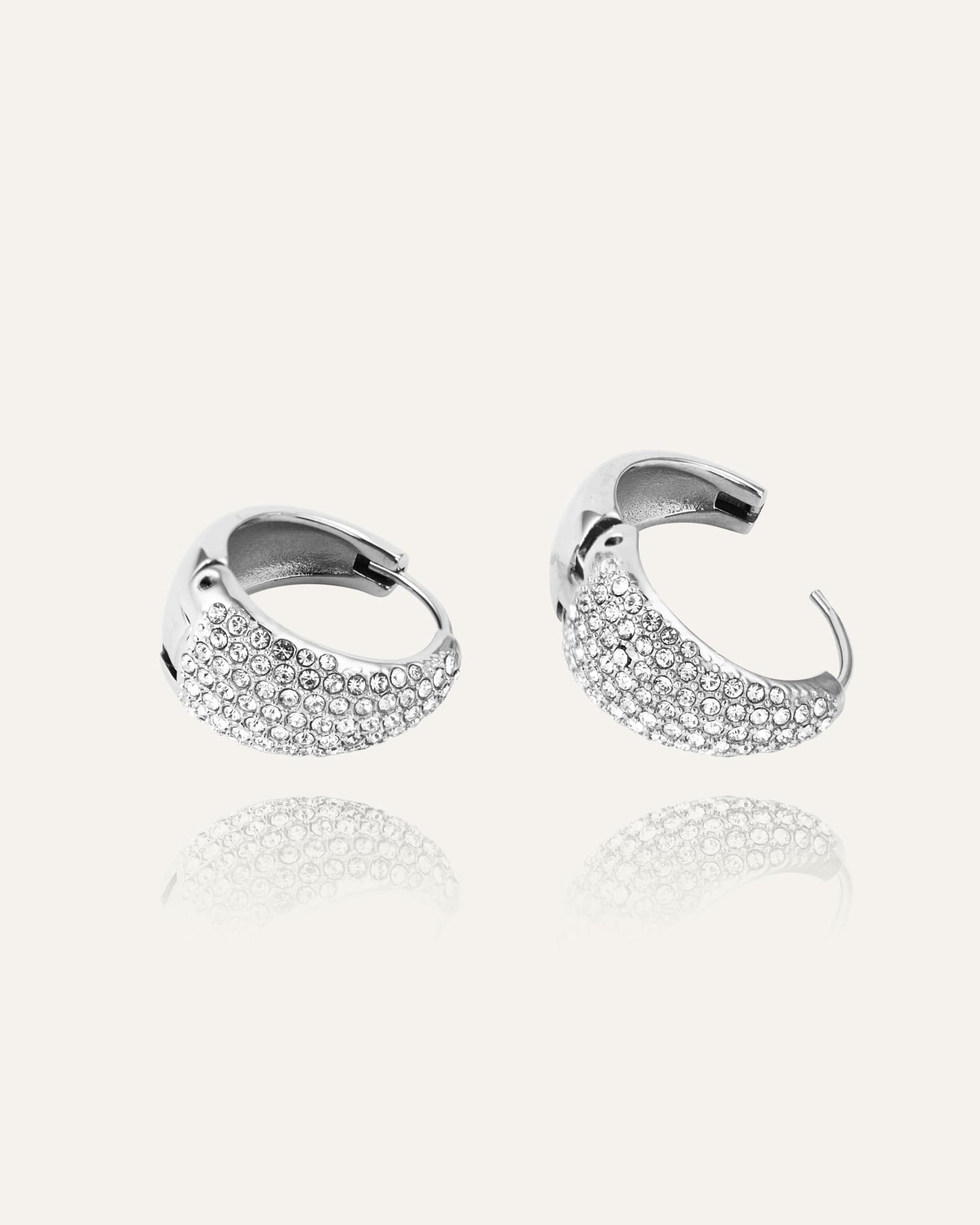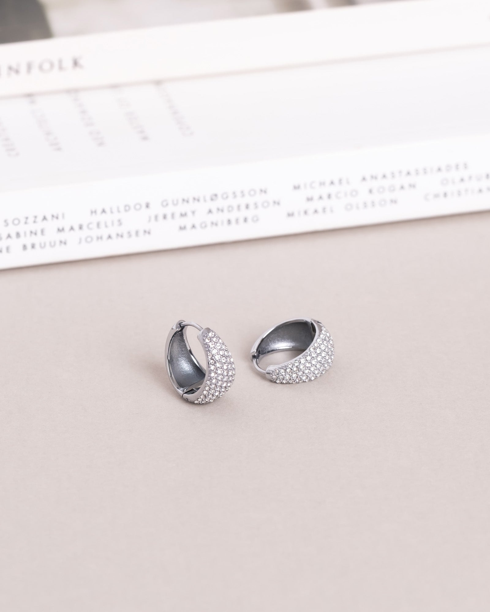 Hoop-øredobber med cubic zirconia-steiner, designet for å tilføre tidløs og moderne eleganse til antrekket ditt. Laget av massivt rustfritt stål – slitesterke og vannavstøtende, og bevarer fargen over tid.